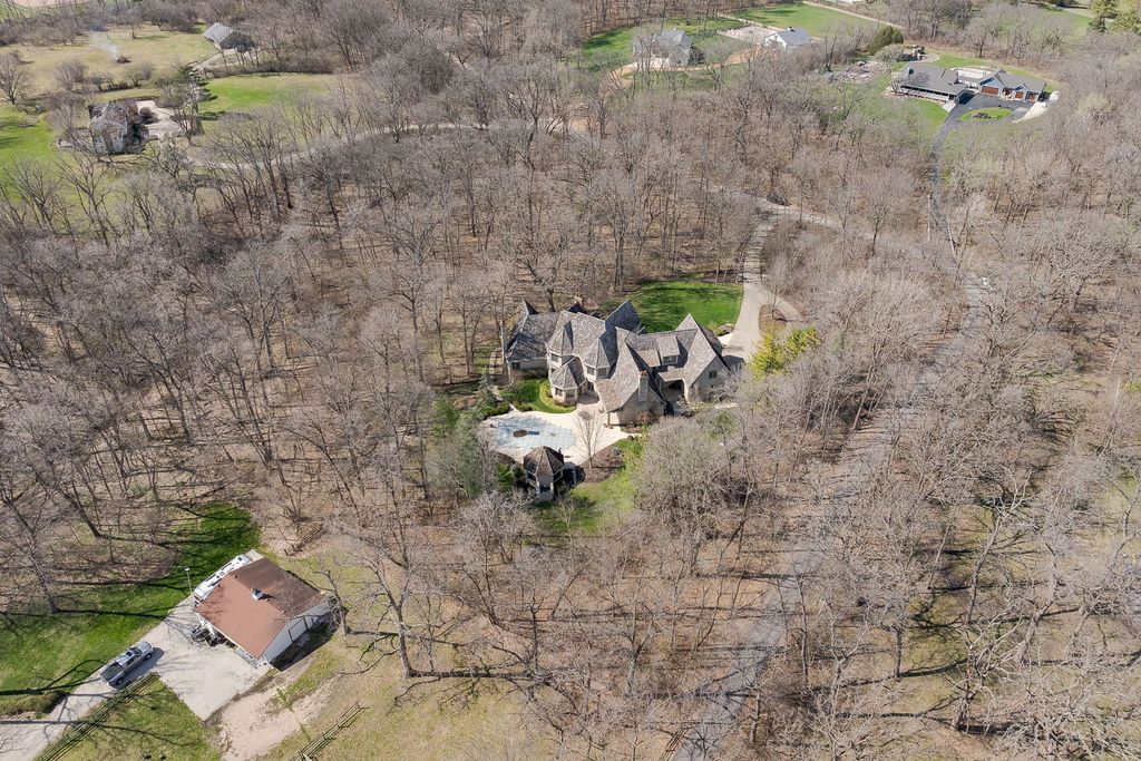 Private 5-Acre Luxury Estate in Wayne with Over 11,000 Sq Ft of Finished Living Space. Set on a secluded 5-acre homesite in the highly sought-after equestrian community of Wayne, surrounded by acreage properties and riding trails, this custom-built estate offers exceptional space, privacy, and flexibility for modern living. With the finished English basement, the home provides over 11,000 square feet of finished living space designed for both everyday comfort and large-scale entertaining. Surrounded by mature trees and natural landscape, the setting delivers true privacy while remaining just minutes from St. Charles, Geneva, and major roadways. Inside, expansive living areas feature hardwood flooring, custom millwork, multiple fireplaces, and a functional layout that flows seamlessly from room to room. The custom gourmet kitchen is equipped with top-of-the-line Viking and Sub-Zero appliances and opens to generous gathering spaces filled with natural light, while the first-floor primary suite offers a quiet, spa-like retreat. Outdoor living includes a saltwater pool, patio areas, and scenic views in every direction. The four-car garage features radiant heat for year-round comfort. Located in highly rated St. Charles District 303, this is a rare opportunity for those seeking a private estate lifestyle with equestrian influence. This is a private estate with acreage, scale, and location that is impossible to replicate at this price point.