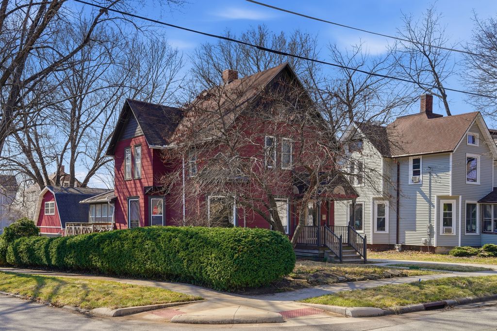 Charming two-story home situated on a corner lot on the northwest side of town! This inviting property features three bedrooms and one and a half baths, highlighted by an open staircase, beautiful woodwork, and some hardwood floors throughout. Enjoy natural light in the window-filled sunroom just off the kitchen, along with a cozy gas fireplace for added comfort. The home includes an updated bathroom and a versatile bonus room off the primary bedroom-perfect for an office, nursery, or sitting area. Outside, you'll find both a one-car attached garage and a heated two-car detached garage (24x26) complete with built-in cabinets. Above the detached garage is a finished game room with its own heating and air conditioning, plus a small deck-an ideal space for entertaining or relaxing. Additional outdoor features include a deck and patio, perfect for enjoying the outdoors. The furnace was replaced in 2024, offering peace of mind for years to come. Conveniently located near the high school and downtown, this home offers both comfort and convenience.