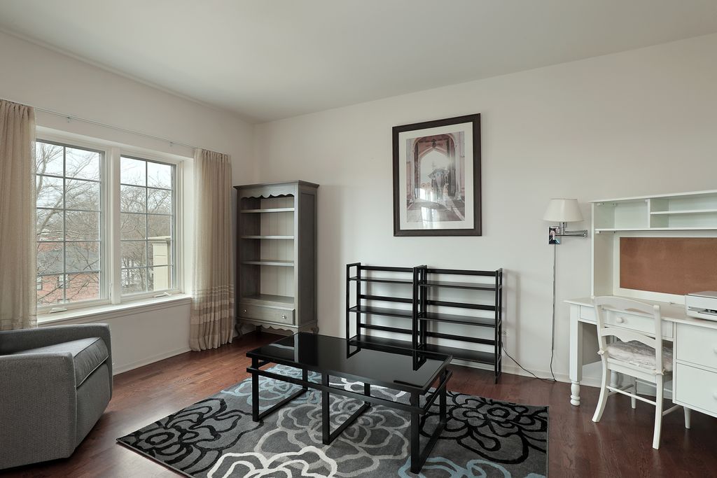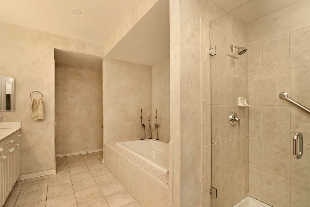 Just what you ordered: Easy luxury living at 2000 Green Bay Road Condominiums in the heart of Highland Park. Unit 405 is a dramatic top-floor residence with a soaring cathedral ceiling and wall of windows facing south. It is a spacious unit, over 2000 square feet, consisting of two bedrooms plus a den, 2.1 baths, eat-in kitchen, gallery foyer and laundry room. The gallery foyer, with two coat closets and a powder room, leads to the living room with its cathedral ceiling, wall of windows and French door to a stone balcony. The living room is adjacent to a large, sunny den. The dining room is very spacious and in an L-shaped configuration to the living room. The eat-in kitchen has table space, granite counters, wood cabinetry, stainless steel appliances and a pantry closet. All these rooms have oak floors, as does the hallway to the bedrooms, baths and laundry room. And, other than the cathedral ceiling of the living room, all rooms have 9 foot ceilings. The primary bedroom is carpeted, has two organized walk-in closets and a fully equipped primary bath with twin vanities, deep soaking tub, separate shower with a seat and a linen closet. The second bedroom also is carpeted and has an organized closet. The second full bath is across the hall and has a walk-in shower. The laundry room has a full-size washer and dryer and storage shelving. The garage space (#68) and storage locker (#14) are located in the heated garage. Enjoy maintenance-free luxury living with a cost-efficient monthly assessment which includes heat, water, gas, common area insurance and maintenance, exterior maintenance, landscaping, snow and trash removal and window repair! There are two exercise rooms, a furnished party room with a full kitchen and half bath and an on-site superintendent, Monday through Saturday. 2000 Green Bay Road Condominiums is pet-friendly and offers fully handicap-accessible residences. The architect, James March Goldberg, designed twin buildings of jumbo brick and lime stone on a 2 acre lushly landscaped campus. There are approximately two dozen distinct floor plans for the 60 units of the twin buildings.