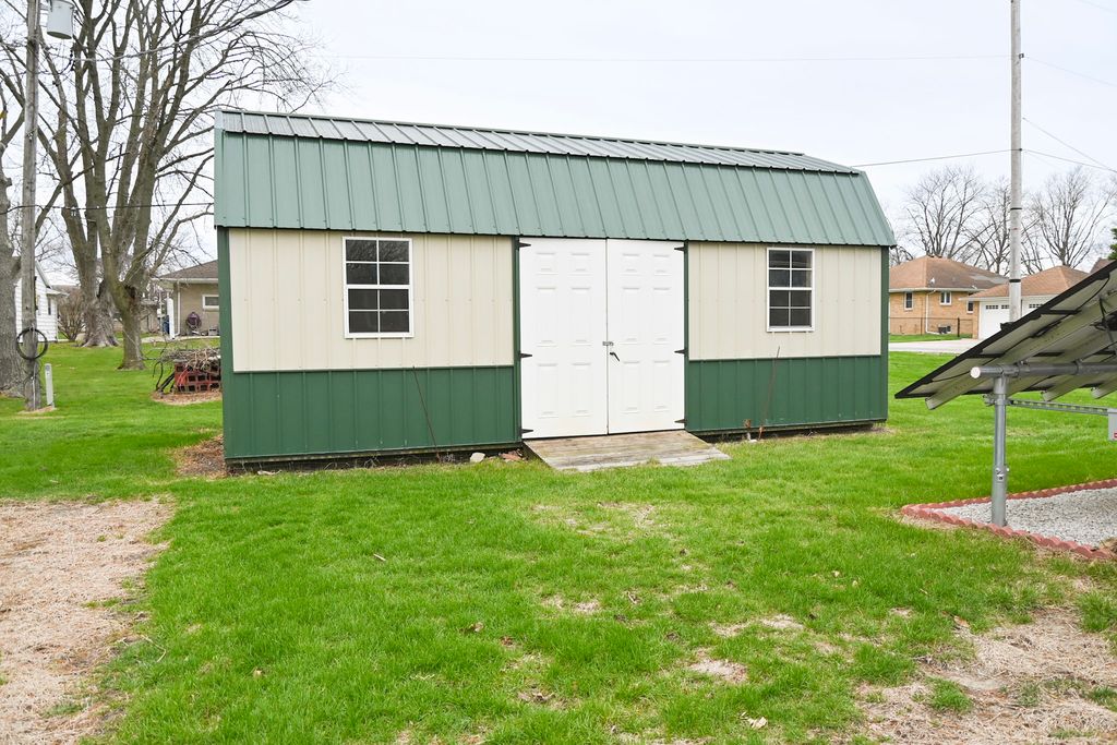Charming 2 could be 3 bedroom, 2 bath, brick ranch on a spacious corner lot with abundant storage throughout. (Current Laundry room was 3rd BR but made into laundry for convenience. Could be converted back.) 2 car attached garage with an LP gas heater. This well-maintained home features an updated kitchen with granite countertops, and all appliances stay including washer and dryer. Recent improvements include a newer roof, replacement windows, and a brand new 42" front door ($7,500). Enjoy the bright and inviting sunroom overlooking the patio and beautifully landscaped yard filled with established perennials. The property also includes a huge outdoor garden shed for even more storage. This all-electric home offers excellent efficiency, with a solar lease that transfers to the new owner, helping keep utility costs at $200 per month. The property has been very well maintained, and the seller is choosing to sell "AS-IS". *There is an additional 409+ SF not included in the finished living SF, but that is regularly used as finished living space and is heated from other room heat sources. This would make 1606 SF that the sellers are using.