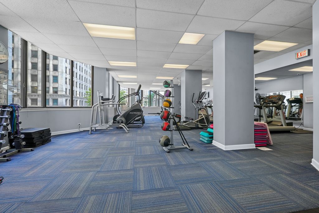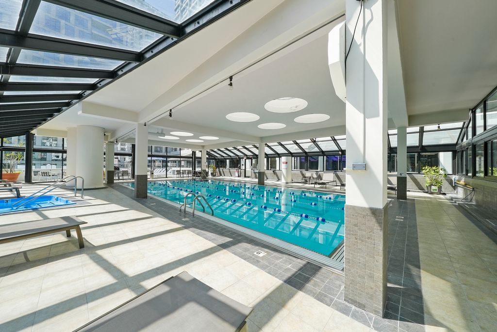 Breathtaking skyline views define this stunning 2-bedroom, 2-bath northwest corner residence. Oversized windows flood the home with natural light, highlighting the open-concept living space with beautiful bamboo flooring, ideal for both everyday living and entertaining. The spacious kitchen features granite countertops, an expansive breakfast bar, and a newer refrigerator with a built-in mini fridge. The primary suite offers a walk-in closet and a private ensuite bath, while the generously sized second bedroom is conveniently located near the second full bathroom. Additional highlights include a wet bar, bamboo flooring throughout, and a rare ventless in-unit washer/dryer installed in 2025. Recent upgrades include a full repaint in 2023, popcorn ceiling removal, upgraded remote-controlled blackout blinds and more! Deeded garage parking additional 35k. This full-service building offers exceptional amenities, including an indoor pool and jacuzzi with river views, a large sun deck, premium fitness center, and 24-hour door staff. Ideally located in the heart of downtown Chicago, just steps from the Magnificent Mile and the Chicago River, with easy access to the Riverwalk, public transportation, grocery stores, and countless restaurants. From the moment you enter, you'll see how special this home truly is. Don't miss the immersive 3D tour-click the 3D button to walk through the home!