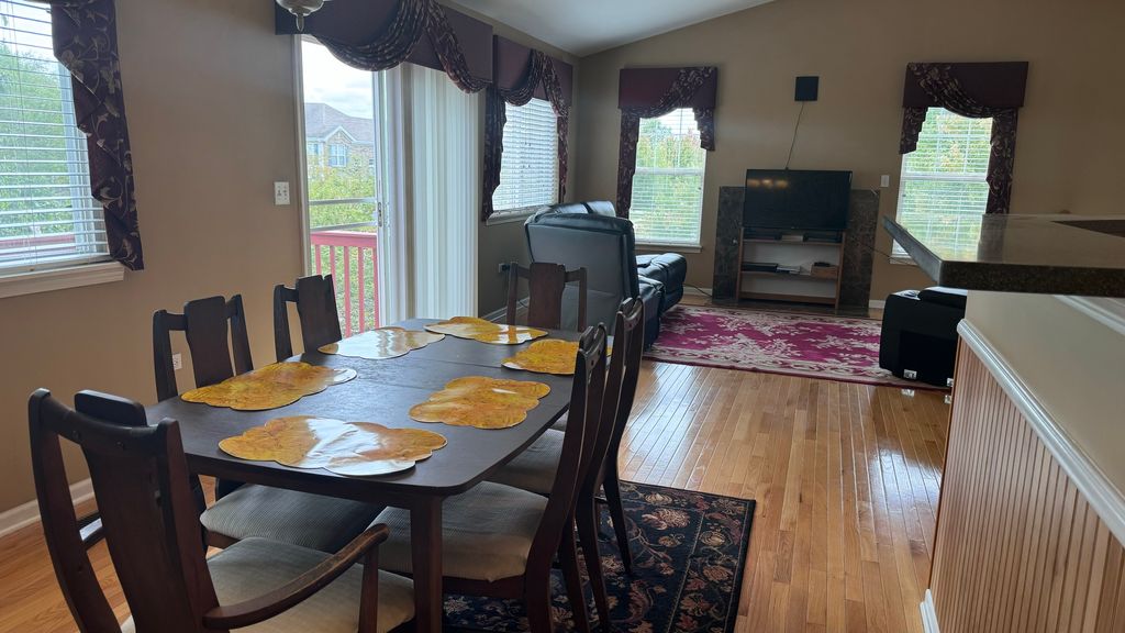 End unit Luxurious Townhome is located in an upscale neighborhood. dramatic entry, open floor plan. perfect for entertaining Volume ceiling, breakfast nook, contemporary kitchen with pantry, hardwood floor and burst of natural light in Living area. fireplace, separate formal dinning area with upgraded chandelier and sliding door with access to the deck. recessed lights with dimmers in every room, ceiling Fan, Gas fireplace, Intercom system, Master bedroom with custom built shelves in walk-in closet, high volume ceiling with ceiling fan carpet floor, master bath, at ground level,Family Room carpeted, with gas fireplace, ceiling fan, light dimmers and sliding door to outdoor access , 2nd full bathroom and carpeted 2nd bedroom with fan and walking closet &Laundry room. Heated two car garage. Unfinished basement. sum pump has emergency backup system. Property is being sold ASIS. Subdivision community amenities outdoor pool, clubhouse (rent for your events) tennis court, walking trail and playground.