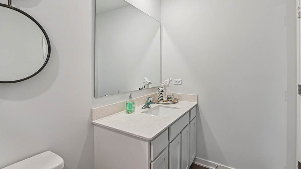 Discover yourself at 1026 Emerald Drive in Montgomery, Illinois, a charming new home in our Marquis Pointe community. This home will be ready for a fall move-in! This home backs to a wooded bike & walk path and includes a 2-car garage, beautiful stone on the front of the home and a fully sodded yard. The Bellamy plan offers 2051 square feet, 2 story, 4 bedrooms, 2.5 baths, 9-foot ceilings on first level, and a full walkout basement. As you step through the front door, you'll find a private study-perfect for working from home or setting up a quiet reading nook. Entertaining will be easy in this open-concept kitchen and family room layout with a large island and an overhang for stools, 36-inch designer cabinetry with soft close doors and drawers. Additionally, the kitchen features a walk-in pantry for extra storage, modern stainless-steel appliances, sparkling quartz countertops, and easy-to-maintain luxury vinyl plank flooring. Heading up the staircase you will find your private getaway with your extra-large primary bedroom and en-suite bathroom with a raised height dual sink, quartz top vanity, and walk-in shower with spacious walk-in closet. Convenient laundry room on the second level, 3 additional bedrooms with a full second bath and a linen closet complete the second floor. All Chicago homes include our America's Smart Home Technology, featuring a smart video doorbell, smart Honeywell thermostat, smart door lock, Deako smart light switched, and more. Photos representative of plan only and may vary as built.