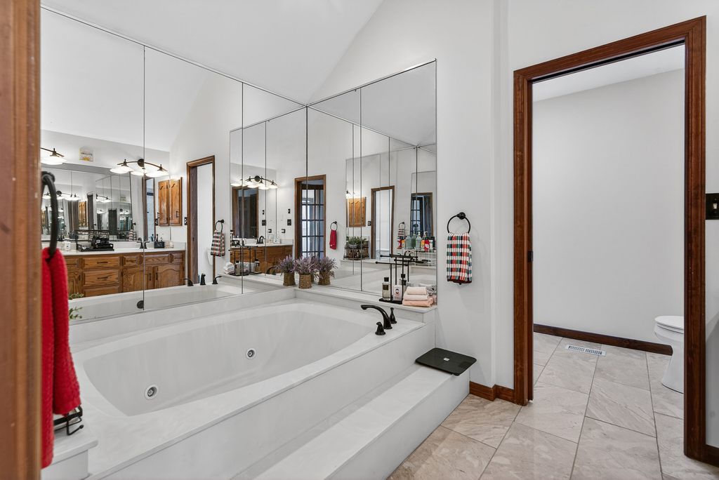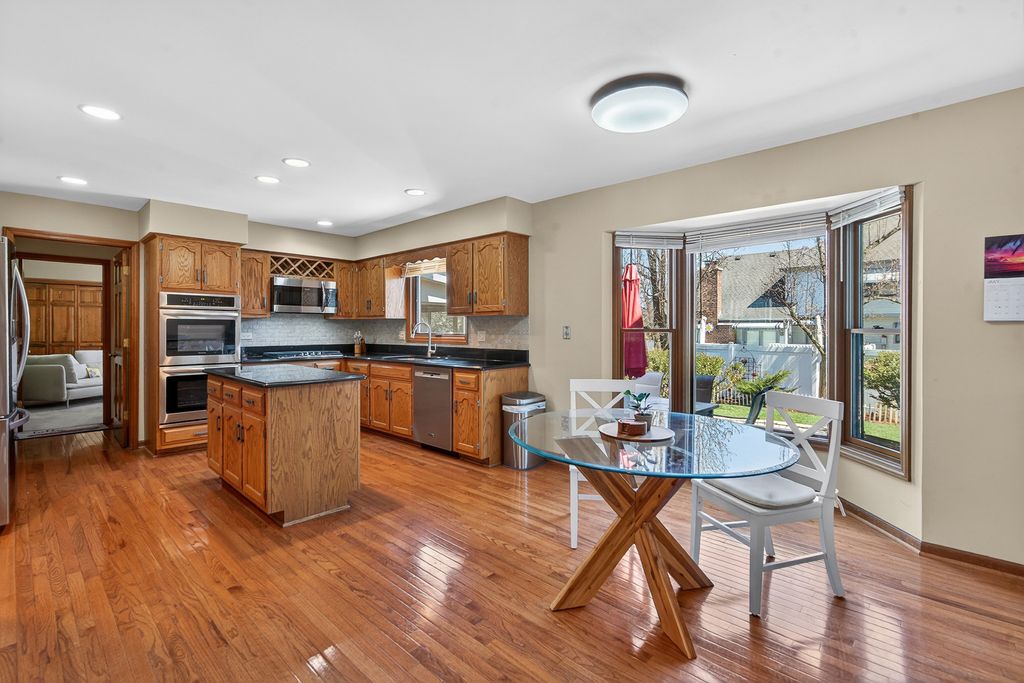 PERFECTLY LOCATED, HIGHLY RATED SCHOOLS, & SPACIOUS LAYOUT! This beautiful home is the one you've been waiting for! Enjoy a custom home featuring nearly 6,000 sq ft of living space with new windows, new fence, and updated landscaping and gradation. As you enter, note the charming covered front porch, dramatic 2-story formal foyer, and elegant crown molding throughout. The main floor boasts a formal dining room, living room, and open concept kitchen/family room featuring new steel appliances, new faucet and shower fixtures, pocket doors, and a retractable hose-perfect for holiday entertaining! Enjoy summers in your fully fenced-in yard boasting a beautiful paver patio, perennial garden, outdoor firepit, and 3- to 4-season sunrooms with lush landscaping. The versatile layout includes primary suites on both the main and second floors! Utilize the main floor primary bedroom with attached full bathroom and separate entry as an IN-LAW SUITE, home office, maid's quarters, or extended guest space. The second-floor primary suite offers a dedicated sitting room, two large walk-in closets, private four-piece en-suite with soaking tub, bidet, towel warmer, and direct access to a sun-drenched den, ideal as a meditation room, studio, or executive office. The home also features a fully finished deep-pour basement with recent paint and finish, spiral stairs, hidden speakeasy, gym, billiards room, poker room, tasting room, rec room, built-in playhouse, bonus bathroom, and attached office/lounge. Additional updates include new paint throughout, gutter guards, curtains and window treatments, new wooden blinds, Nest thermostat, and LED bulbs. Conveniently placed 2nd-floor laundry and ample storage throughout complete this exceptional property. Located in an award-winning school district (Fremd HS) with easy access to I-90 and forest preserves. Luxury, space, and functionality in one extraordinary home!
