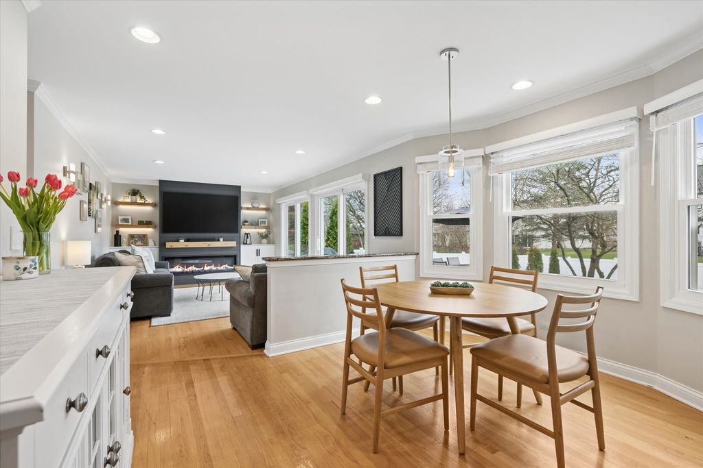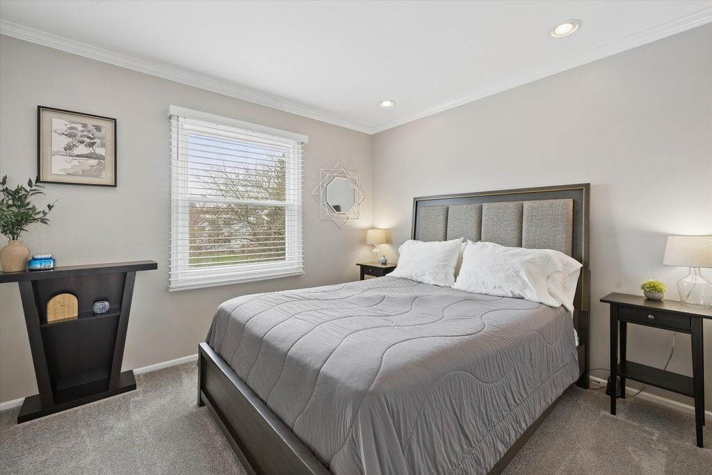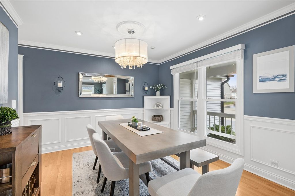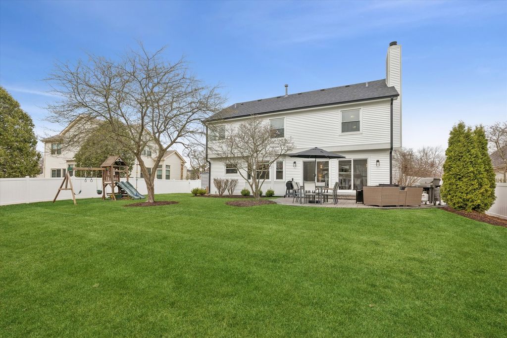 Welcome to this beautifully updated 4-bedroom, 2.5-bath two-story home in the highly desirable Chestnut Corners of Lake Zurich. Thoughtfully improved from top to bottom, this home seamlessly blends modern updates with timeless comfort in an unbeatable location. The exterior has been completely refreshed with brand new siding and roof (2024), along with Pella windows and sliding patio doors (2019) that fill the home with natural light. Enjoy the newly installed stone patio, professional landscaping, and a new white fiberglass privacy fence-creating the perfect outdoor retreat. The updated garage features a new door and epoxy flooring for a clean, finished look. Inside, you'll find hardwood floors throughout most of the home, complemented by fresh paint, architectural details like vaulted ceilings, crown molding, and wainscoting, and thoughtfully updated lighting-all on dimmer switches for added ambiance. The open-concept main level connects the kitchen, breakfast area, and living space, ideal for both everyday living and entertaining. A standout feature is the custom media wall with built-ins, floating wood shelves, accent lighting, and an electric fireplace with a wood mantel-creating a warm and inviting focal point. Motorized light-filtering roller shades in the family room and Bali blinds throughout add both convenience and style. Upstairs, the spacious bedrooms offer comfort and functionality, including new carpet in three bedrooms and a beautifully designed bedroom featuring a custom accent wall. The primary suite impresses with vaulted ceilings, dual closets, and a spa-like bath with double vanity, soaking tub, and separate shower. Moen plumbing fixtures and updated faucets and showerheads are featured throughout the home. Additional highlights include a refreshed staircase, new tile flooring in the laundry room, and a finished partial basement with a large unfinished storage room and crawl space-offering excellent flexibility and storage options. Mechanically, the home is well-maintained with a newer water heater (2024), HVAC (2017), and kitchen appliances (2018). Located in a welcoming, family-friendly neighborhood with highly rated schools, this home is just minutes from parks, shopping, dining, downtown Lake Zurich, and the beach. Meticulously maintained with clear pride of ownership, this move-in ready home truly has it all.