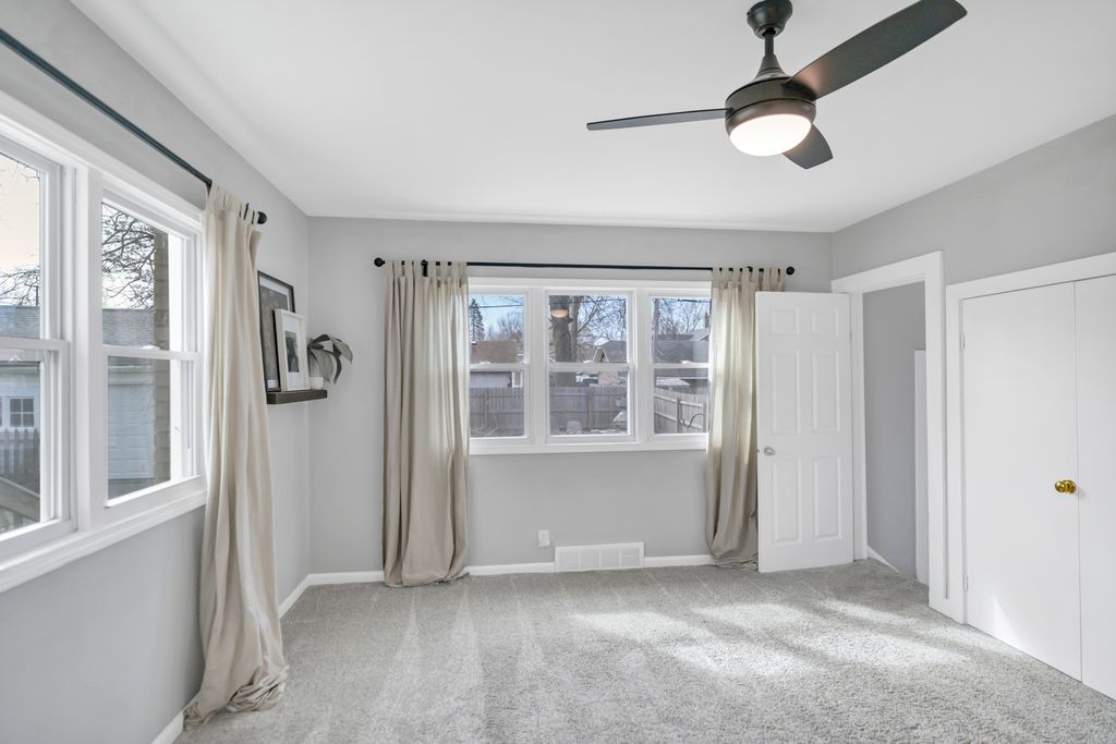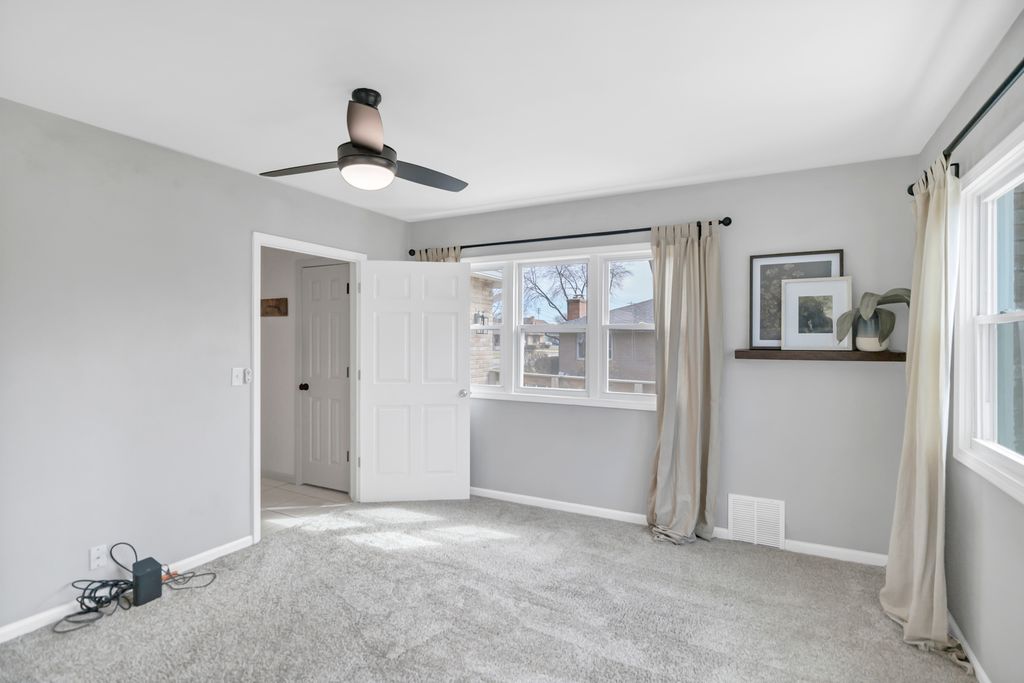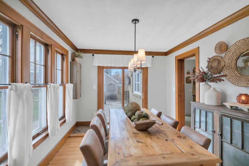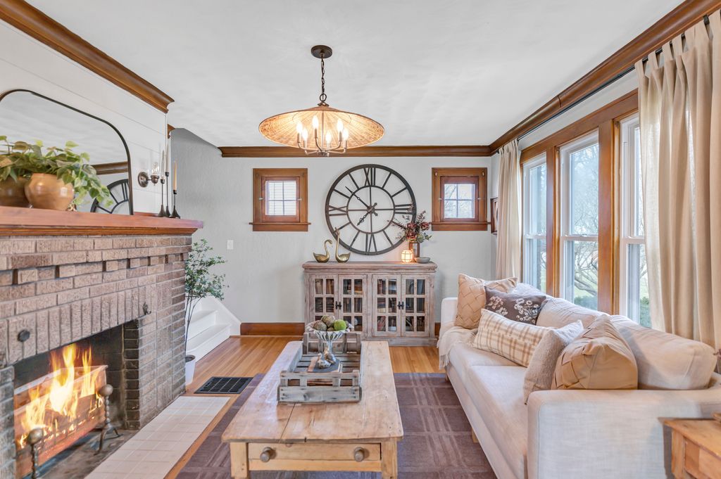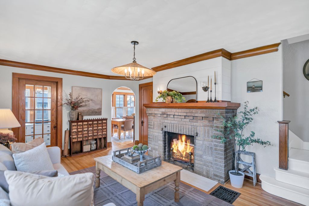 Charming 3-bedroom Cape Cod situated in a prime location in Loves Park, featuring an inviting arched doorway that leads to a living room with crown molding, gleaming hardwood floors, and a cozy brick fireplace. The formal dining room offers crown molding, hardwood flooring, a slider to the outdoor space, and a pass-through to the kitchen-perfect for entertaining. The kitchen boasts ample cabinet storage, stainless steel appliances, granite countertops, and a tile backsplash. A bright corner office with abundant natural light is ideal for working from home or could easily be a 4th bedroom. The sought-after main level primary bedroom includes access to a full bath and could also serve as a family room. Upstairs showcases two generously sized bedrooms and an additional full bath. The full basement offers endless potential for additional living space, including a rec room, laundry area, and storage. NEW: Roof (2018), AC (2025), Water Heater (2025), water softener system, gutters (2018), front stoop (2018), and sidewalk(2018). Included: smart thermostat.Detached 2 car garage with work shop area. Conveniently located near shopping, dining, schools, , the interstate, and just steps from Martin Park and the Rock River-this home perfectly blends charm, functionality, and an unbeatable location.