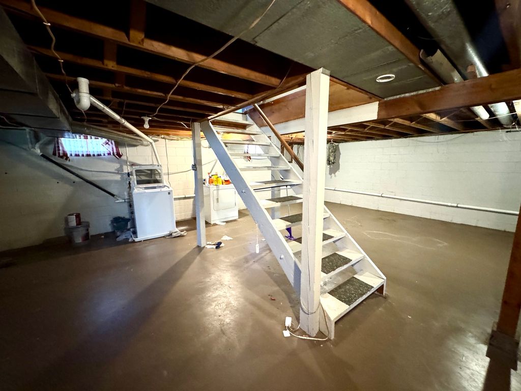 Welcome to this well-maintained 3-bedroom, 1-bath ranch home designed with comfort, functionality, and ease of living in mind. The thoughtfully laid-out floor plan offers a seamless flow, making everyday living and entertaining simple and efficient. The home features a spacious, dry basement that's ready to be finished-offering endless possibilities for additional living space, a home gym, recreation room, or storage. Car enthusiasts and hobbyists will love the impressive 26' x 30' two-car garage, providing plenty of room for vehicles, tools, and workspace. In addition, a large concrete pad offers convenient parking for two more vehicles. Inside, all kitchen and laundry appliances are included, making this home truly move-in ready. The low-maintenance vinyl exterior ensures easy upkeep, while the inviting front deck provides the perfect spot to relax and enjoy the outdoors. This property combines practicality, space, and potential-don't miss the opportunity to make it yours!!
