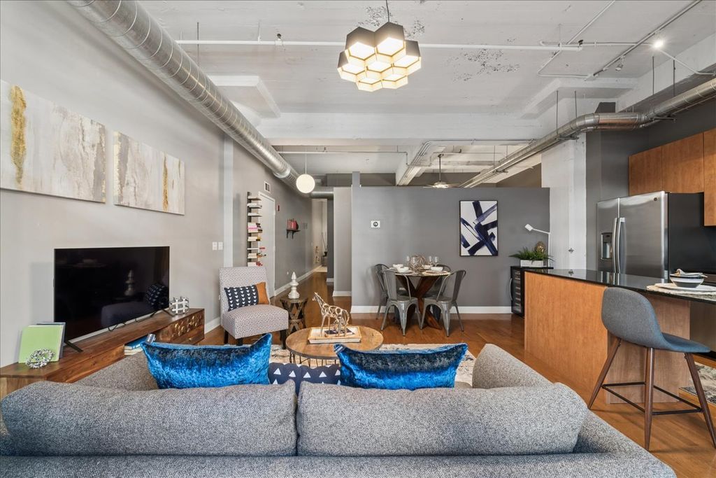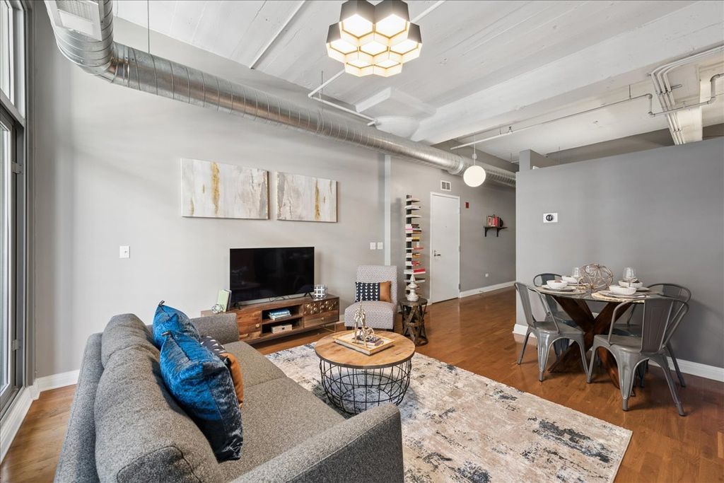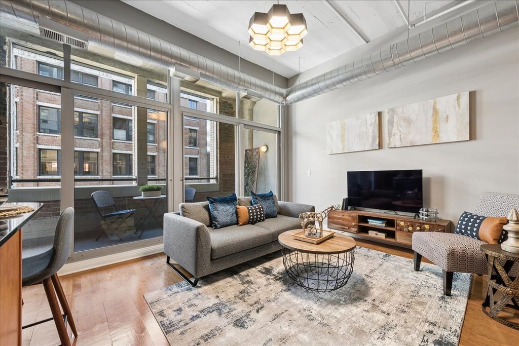 Chic and cozy 2 bed | 2 bath concrete loft, ideally located in the heart of West Loop Gate! Enter directly into an open living/kitchen area boasting a unique designer chandelier, granite counter-tops, an island/breakfast bar, all SS appliances, a private balcony, and floor-to-ceiling windows that flood the home with natural sunlight. Follow the hall to the lofted primary bedroom offering plenty of space for a king-sized bed, incredible closet storage, an electric washer/dryer combo, and an en-suite bath complete with soaking tub, separate shower, a double sink vanity, and a new Toto heated toilet seat/bidet. The lofted second bedroom is perfect for an in-home office or guest bedroom with a shared closet and full bath in the hall. Recent updates include new fridge 2022, dishwasher 2019, washer/dryer 2019, new carpeting & paint throughout, light fixture in primary bed, and Webpass google fiber internet installed. This home includes a smart thermostat, a very large bonus storage room (10x10) on the same floor as the unit, and a storage locker. Garage parking space #134 is included in the list price. Building amenities include 24/7 doorman, Amazon package lockers, Tide laundry lockers, maintenance, on-site management, gym, party room, bike room, storage lockers, service elevator, roof deck with grills/kitchen, indoor kitchen/bar, theater, pool tables, ping pong, foosball, darts, and bowling lanes!! Perfectly situated at the junction point of multiple neighborhoods: the Chicago's Loop financial district, West Loop/Restaurant Row, and Fulton Market, with easy access to River North, Lake Michigan, and Little Italy/UIC's campus! Located a stone's throw to CTA/public transit, Lake Shore path/drive, I-290/90/94, Union Station, and all that the downtown restaurant and shopping scene has to offer!
