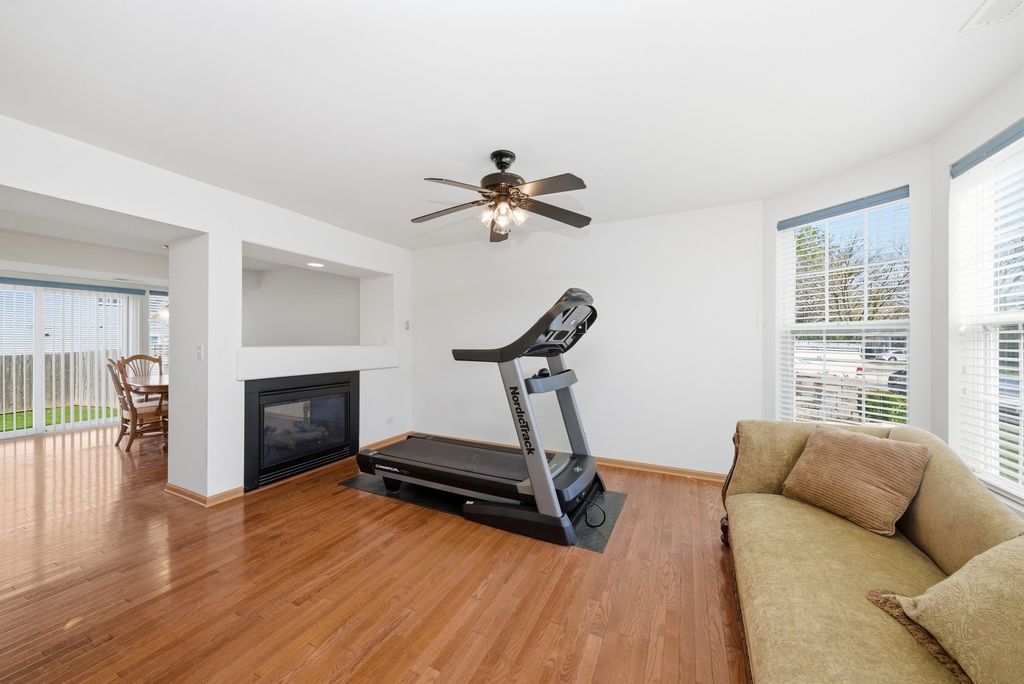 Welcome to your new home, offering a perfect blend of space, comfort, and functionality with 3 bedrooms, a versatile loft, 2.5 bathrooms, and 1,828 square feet of well-designed living space, plus a full unfinished basement ready for your future plans. As you step inside, you're greeted by rich hardwood floors that extend throughout the first floor, enhancing the traditional and inviting layout. The country-style kitchen features warm oak cabinetry, ample counter space, and a layout that flows effortlessly into the dining area, making it ideal for both everyday living and entertaining. A sliding glass door off the dining space leads to a private, fully fenced backyard-perfect for morning coffee, summer gatherings, or simply unwinding at the end of the day. A cozy two-sided gas fireplace serves as a beautiful focal point, connecting the dining room and family room while adding warmth and character to both spaces. The main level also includes a separate living room for additional entertaining or relaxation, a convenient powder room, and first-floor laundry for everyday ease. Upstairs, the expansive primary suite offers a large walk-in closet and a private en-suite bathroom, creating a comfortable retreat. The second bedroom features vaulted ceilings that add volume and natural light, while the third bedroom provides additional flexibility for guests, family, or a home office. The generously sized loft offers even more versatile living space and can easily be converted into a fourth bedroom if desired. The full unfinished basement provides excellent storage and a blank canvas to create additional living space, a home gym, or recreation area to suit your needs. Completing the home is an attached two-car garage and a location that truly stands out, just minutes from shopping, dining, parks, and everyday conveniences, making this home an exceptional opportunity to enjoy both comfort and convenience.