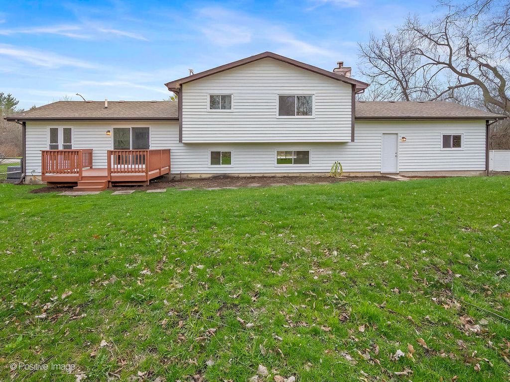 SIMPLY GORGEOUS SPLIT LEVEL! This fully updated home is truly move-in ready and backs to Illinois Prairie Path. The spacious main level features brand-new LVP flooring throughout the living, dining, and kitchen areas, along with all-new windows, interior and exterior doors, fresh paint, trim, and recessed lighting. The inviting living room showcases a large bay window, while the separate dining area flows seamlessly into the beautifully updated kitchen. Enjoy white shaker cabinets, granite countertops with matching backsplash, and all-new stainless-steel appliances. A brand-new sliding glass door opens to the deck with new railing and fresh stain, overlooking a fully fenced backyard-perfect for relaxing or entertaining. The lower level offers a huge family room with a cozy wood-burning fireplace, office/flex space, and a convenient half bath, plus direct access to the attached 2-car garage with pull-down attic storage. Upstairs, you'll find new carpet throughout all three bedrooms along with an updated full bathroom with shower/tub combo. The primary suite includes a private bath and serene backyard views. Additional storage can be found in the unfinished basement, featuring a new washer and dryer and freshly painted floor. Ideally situated in a private, peaceful location backing to the Illinois Prairie Path, with easy access to North Avenue and all the shopping and dining options of West Chicago. Enjoy golf at nearby St. Andrews Golf Course, close to Reed Kepler Park.