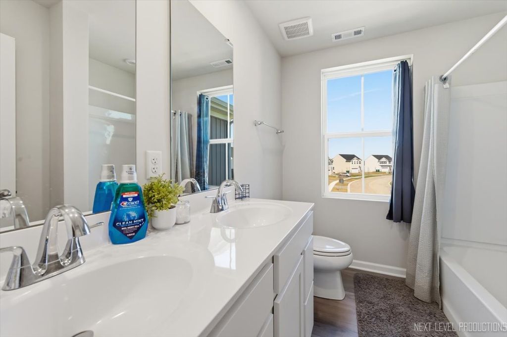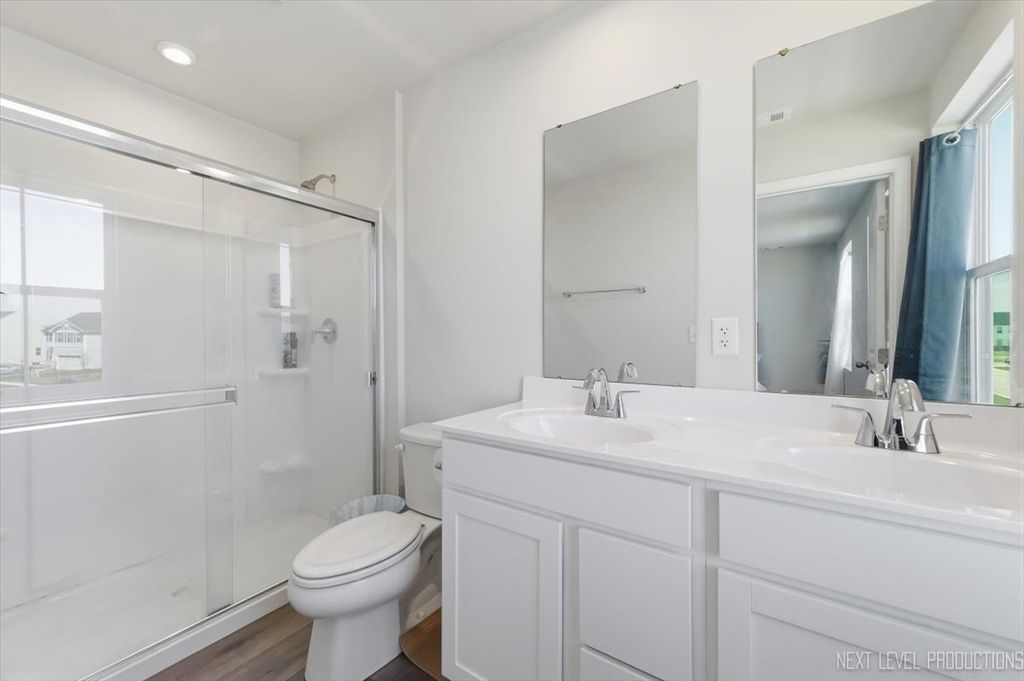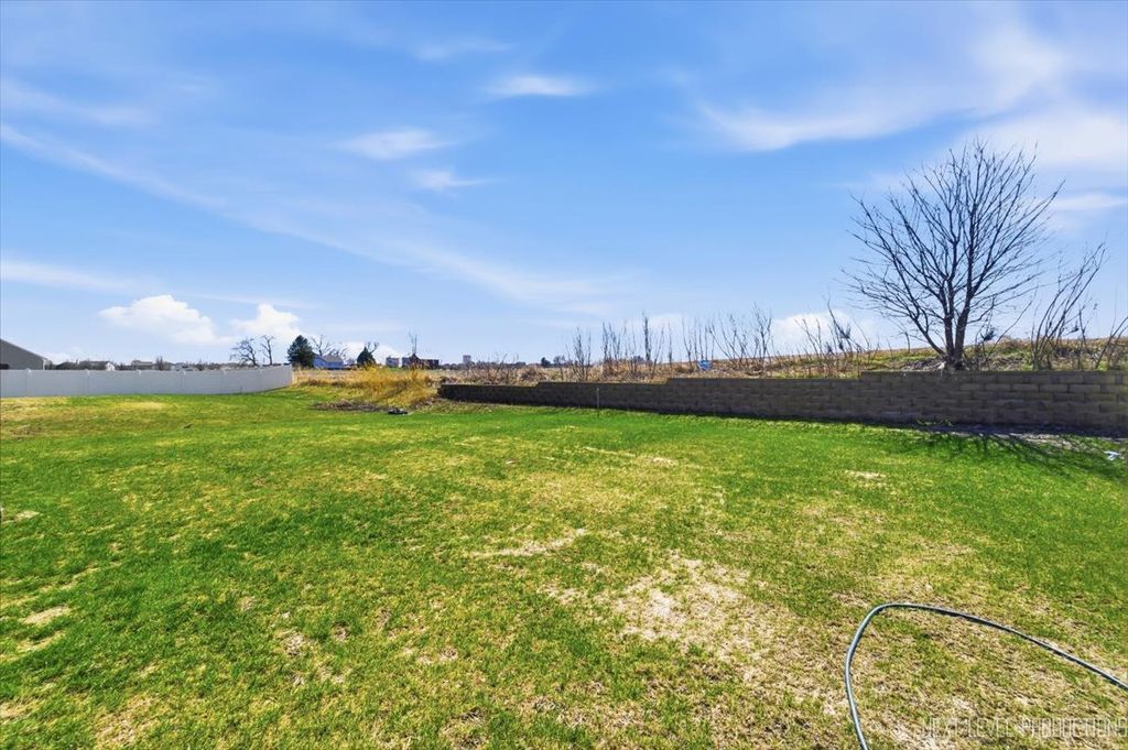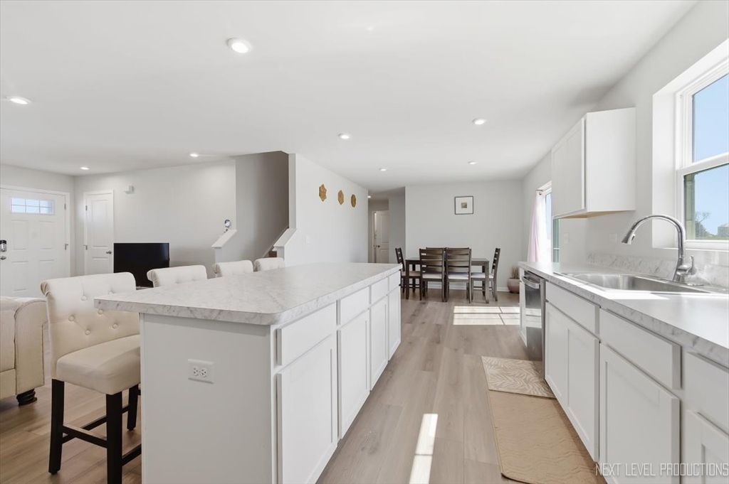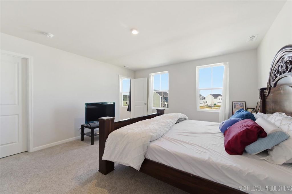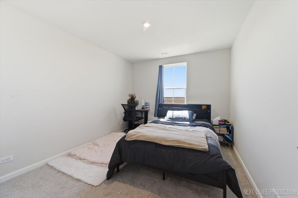 Beautiful like new 5 bedroom, 2.5 bath vinyl and stone two story home built in 2025 in the desirable Deer Crossing neighborhood of Plainfield, offering modern design, space, and everyday convenience. Set on a landscaped lot with a covered front porch and 2 car attached garage, this newer home welcomes you with wood laminate flooring, recessed lighting, neutral decor, and a flowing open floor plan. The spacious family room opens to an eat in kitchen featuring an island, breakfast bar, and stainless steel appliances, with an adjacent dining room that includes a slider to the backyard for easy indoor outdoor living. A first floor home office provides the perfect work from home setup. Upstairs, you'll find five generously sized bedrooms including a primary suite with a private bath and double bowl vanity, along with the convenience of a second floor laundry room. The full unfinished basement offers endless potential for future living space or storage. Additional features include a smart thermostat and a prime location close to schools, shopping, dining, and the expressway.