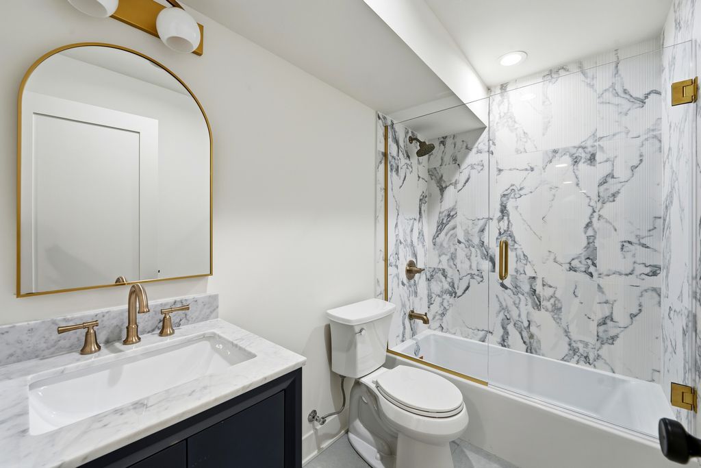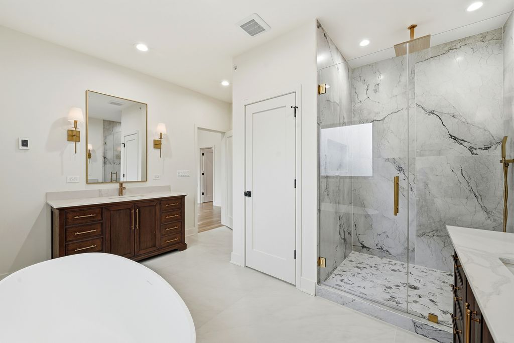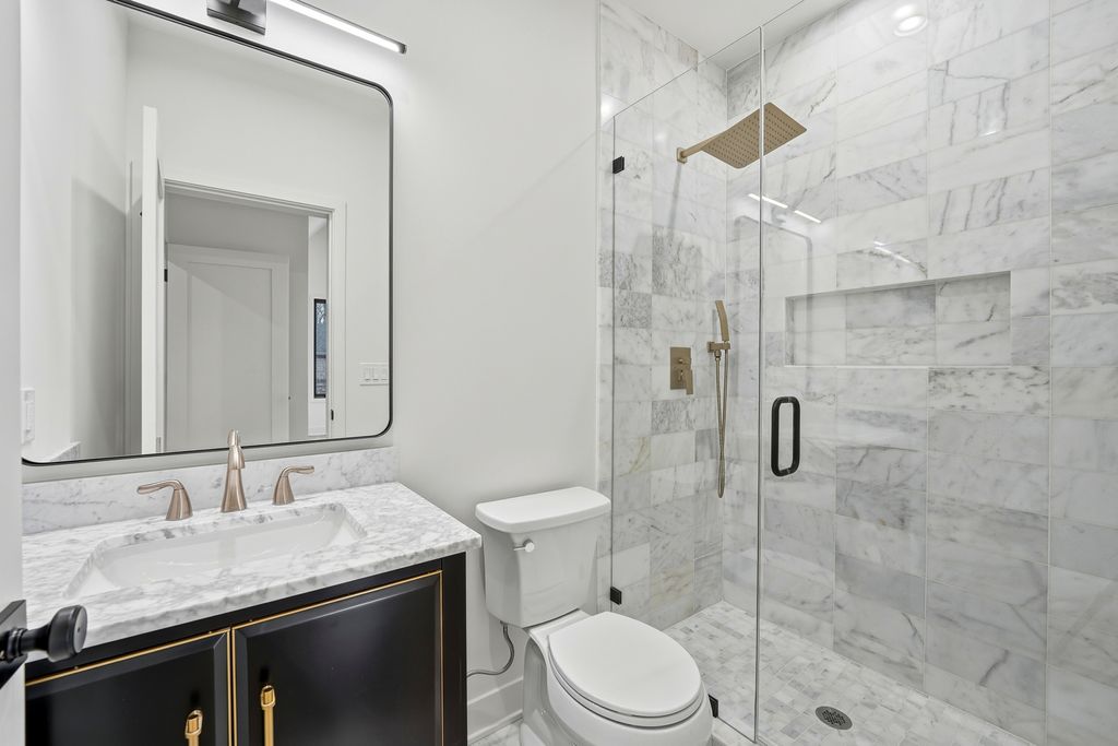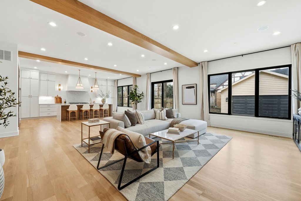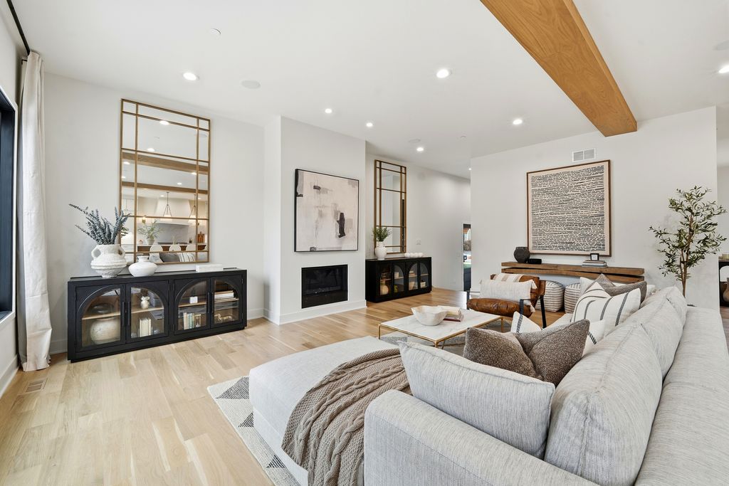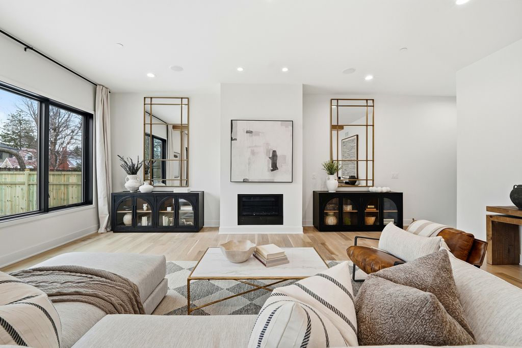 Step into timeless opulence in this stunning new construction home. Featuring wide-plank 5-inch white oak hardwood floors throughout, expansive Pella windows that flood the home with natural light, and striking quartz countertops. The gourmet kitchen boasts a 48-inch Decor refrigerator and range, a dramatic 10-foot island, under-cabinet lighting, and a butler's pantry, perfect for entertaining. A direct-vent gas fireplace adds warmth and elegance to the living spaces. The primary ensuite is a true retreat, complete with heated floors, a luxurious freestanding soaking tub, and dual 60-inch vanities. Additional highlights include a dedicated dog wash station, a built-in home office, and a mudroom with abundant storage. With soaring 10-foot ceilings on the main level, 12-foot ceilings in the bedrooms, 8-foot solid-core doors, and an impressive 8-foot sliding door in the family room, every detail exudes quality and spaciousness. The living room is pre-wired with surround sound speakers for effortless entertainment. This exceptional home offers 5 bedrooms with 2 ensuites and 4.5 bathrooms and is perfectly located-within walking distance to downtown, the train station, and just five minutes from the highway exit.