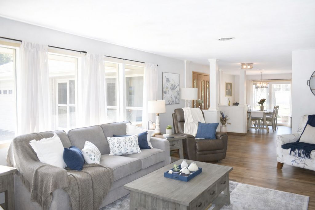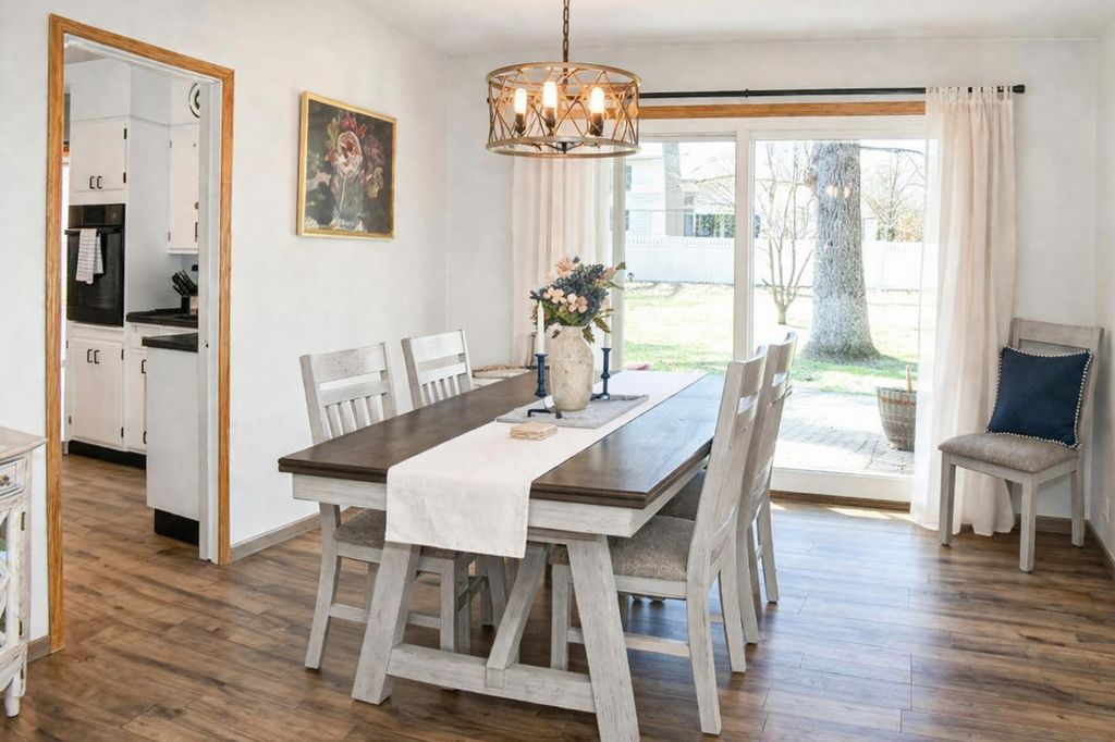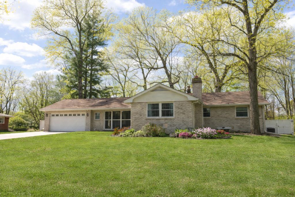 Elegant brick ranch in a tranquil wooded neighborhood with mature trees and a cozy, private setting. Featuring neutral tones throughout, creating a bright, clean, and timeless interior. Newer wood plank flooring (2023) and hardwood flooring in the bedrooms. Stylish kitchen with classic farmhouse sink, coffee bar and newer appliances. Bright, sun-filled living room with Gas fireplace. Formal dining room with sliding doors to the patio. Partially finished basement with family room and storage rooms. 2 car attached garage with attic storage and new garage door opener. Enjoy a maintenance-free vinyl fence along with a storage shed and patio-perfect for outdoor living. Recent upgrades include all new Electric and Water Heater (2024), Central Air (2025). Vinyl replacement windows throughout.