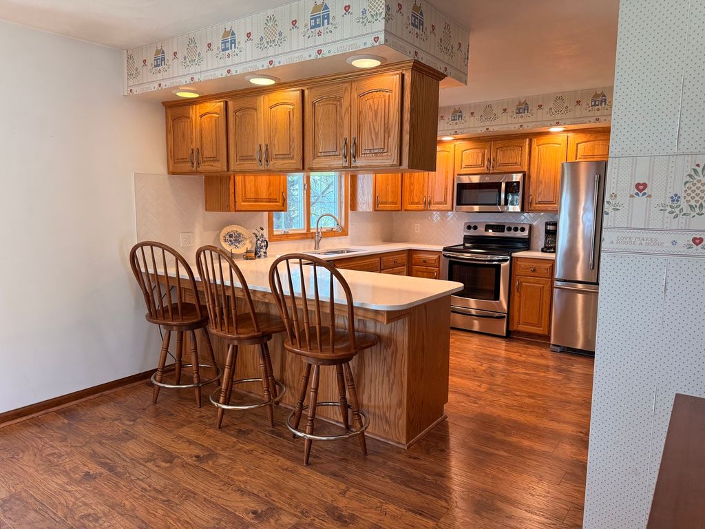Welcome to this move-in-ready gem that perfectly blends comfort and functionality. This very well-maintained residence features 3 spacious bedrooms and 2 full bathrooms on the main level, including a private master suite for your convenience. The heart of the home shines with bright, natural light flooding the kitchen and dining areas. You will love the beautiful oak cabinetry and sleek quartz countertops, while the cozy fireplace in the dining room creates the perfect ambiance for evening meals or entertaining. Peace of mind comes standard with a built-in Generac generator. A highly desirable laundry room is located right off the garage, featuring excellent storage cabinetry to keep your home organized. The full basement includes an older bathroom and offers massive potential for additional finished living space. Situated on a generous half-acre lot, the property boasts a shaded backyard and a patio-ideal for summer BBQs and relaxation. Attached 2-car garage with easy access to the interior. Don't miss your chance to own this beautiful McNabb home. Schedule your showing today!
