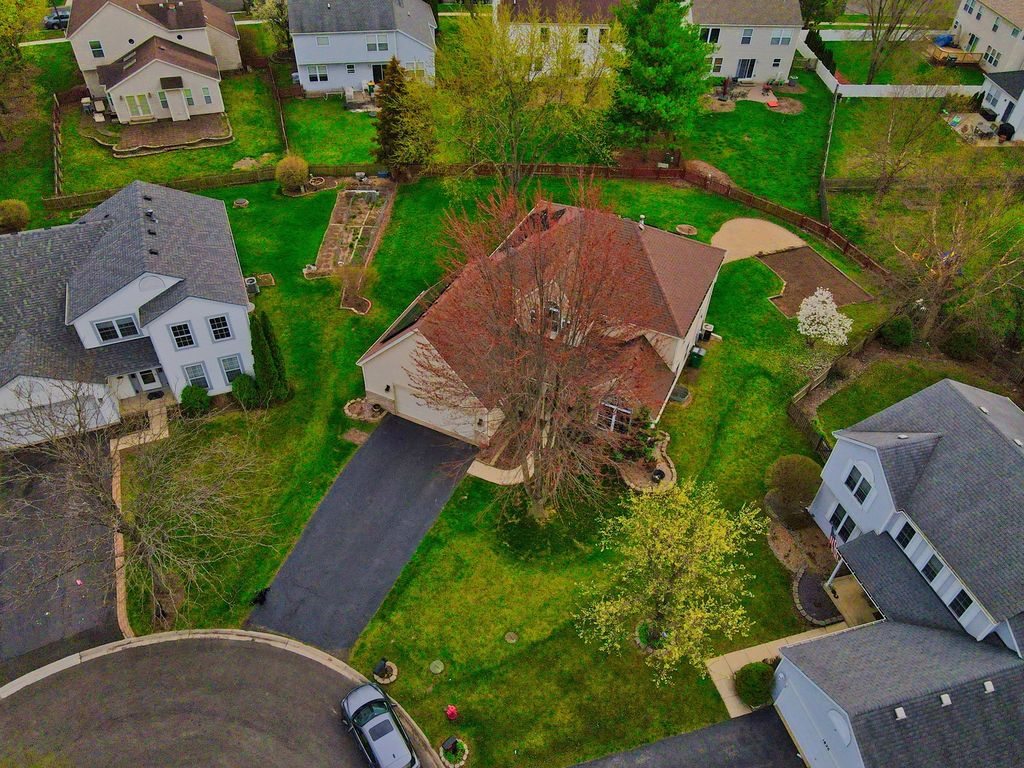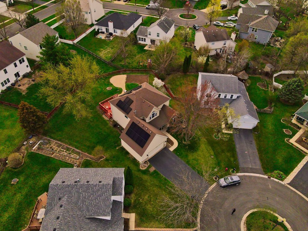 Delightful and spacious, this 5 bedroom, 3.1 bath home with a den is located in the desirable Plainfield School District 202! Home sits on a cul-de-sac and is conveniently near the park and clubhouse where you'll enjoy all of the amenities it has to offer-swimming pool, tennis courts, gym, etc. Lovingly maintained and cared for over the years, is now ready for a new family. Oversized lot provides a great yard, professionally landscaped w/sprinkler system, newly trimmed tree, oversized deck and huge patio - an entertainers dream! Superb open flr plan for a total of 3100+ sq ft(2284 sqft above ground+840 finished basement). Updates include: Solar Pane(2019), Nest thermostat; Roof (2008); 2nd level hardwood floor(2018); Kitchen Island(2018); Customer made window treatment(2019); W/H (2015); Garage door (2016); Tuck pointing (2008); Windows (2008). This solar power home features a formal living/dining rms with vaulted ceiling, family rm, eat-in kitchen, office and a powder rm on the main level. Four bdrms with full master on 2nd level and rec rm, 5th bdrm and full bath in the finished basement. You're buying a lifestyle, not just a home!