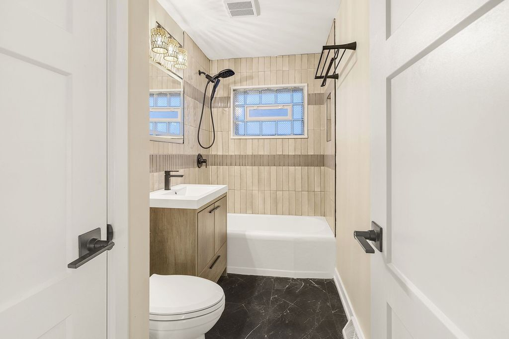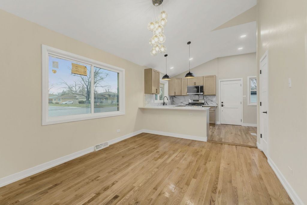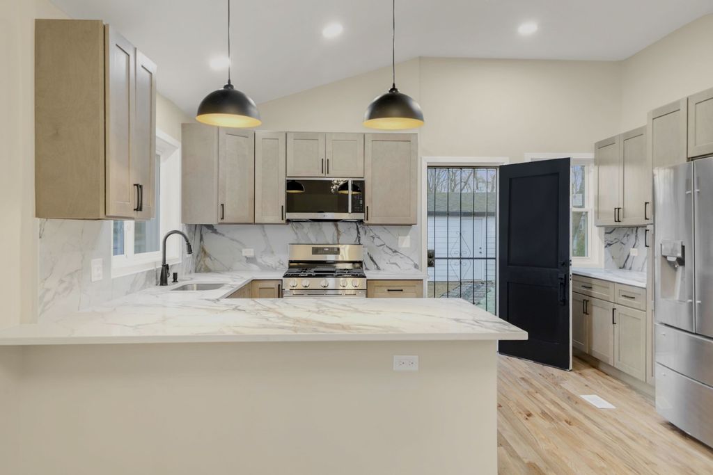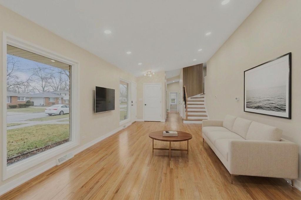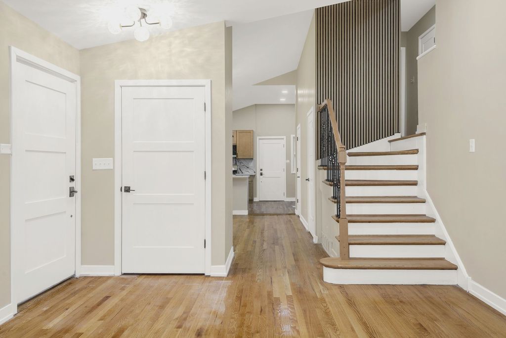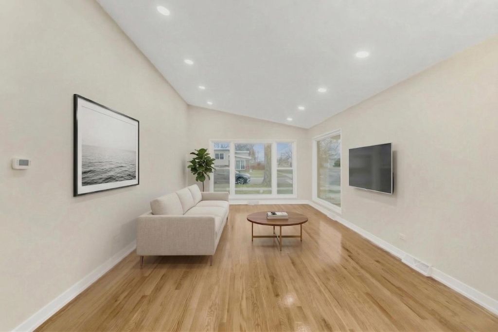 WELCOME TO YOUR NEW HOME! You will need to look no further once you step into this exquisitely renovated, modern contemporary residence, gracefully positioned on a prominent corner lot. Every inch of this home has been thoughtfully curated to deliver both sophistication and comfort at the highest level. Inside, the home unfolds into a seamless blend of elegance and functionality. Rich, real hardwood floors flow throughout, complemented by soaring vaulted ceilings and sophisticated recessed lighting that creates a warm, ambient glow. The gourmet kitchen is a true showpiece! Featuring custom-crafted cabinetry, luxurious quartz countertops, a designer backsplash, and a full suite of brand-new stainless steel LG appliances, you will not be disappointed! Perfectly positioned adjacent to a dedicated dining area, this kitchen was designed for both intimate dinners and elevated entertaining. Boasting 4 generously sized bedrooms and 2.5 impeccably designed bathrooms, this home features a stunning primary suite complete with an en suite bath and expansive his-and-her closets, creating a true private retreat. No detail has been overlooked. Enjoy peace of mind with all-new electrical and updated plumbing systems, along with a brand-new HVAC condenser ensuring year-round efficiency. The exterior has been beautifully refreshed with new siding and a brand-new garage door, enhancing both curb appeal and durability. This is more than a home, it's a statement of modern luxury, designed for those who appreciate quality, craftsmanship, and timeless style.
