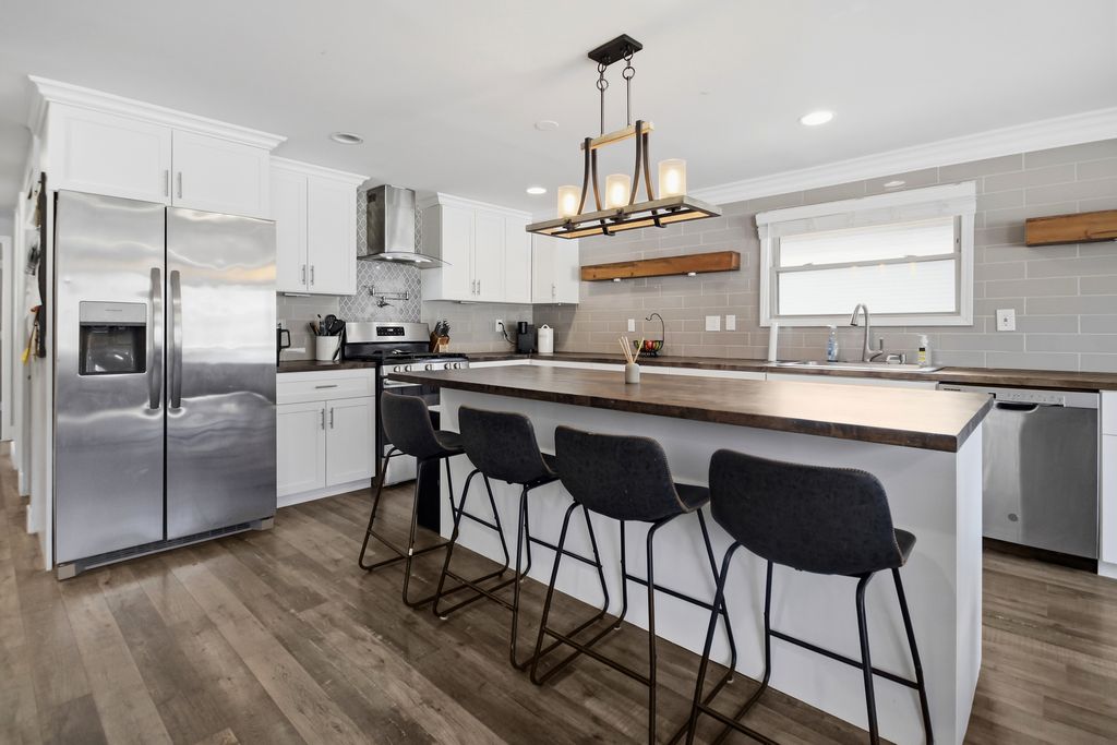 Right in the heart of Bloomingdale-because location actually matters-this 2,400+ sq ft split-level brings the space and the vibe. Featuring 4 bedrooms and 3 full baths, the open eat-in kitchen steals the show with a large butcher block island, open shelving, sleek counters, and stainless steel appliances that give it that clean, modern feel. The primary suite has its own full bath, and the bedrooms and closets are generously sized (no fighting over space here). Head down to the lower level and you've got a Large Bedroom, Full bath and a true hangout zone: a spacious family room, cozy brick fireplace, wet bar, and a large sliding glass door that leads right out to a fully fenced yard with a deck/patio-basically built for entertaining relaxing . And the location? Across from the library, Village Hall, and police station (so behave), plus just blocks from parks, shopping and highly rated District 13 schools.