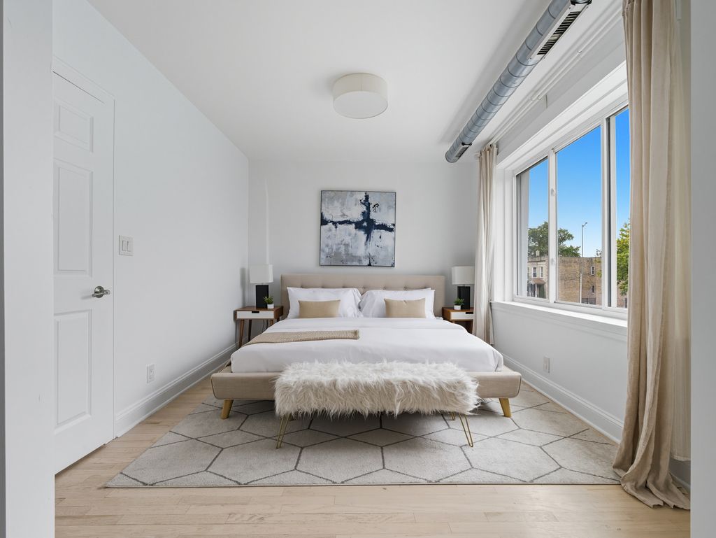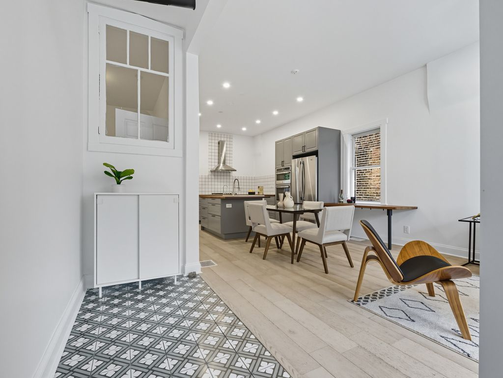 Darling brick farm house, originally built in 1888 before the first World Fair. This property is for EVERYONE- those who want new construction and those who love historic charm. The location, just a block west to Humboldt Park, IS on the brink of becoming THE MOST POPULAR spot in CHITOWN! Enjoy 197.26 acres of Humboldt Park with baseball fields, miles of running, ponds, field houses, and tamale trucks. A couple blocks away is Roeser's Bakery, a quick bike ride to the 606 trail!, enjoy proximity to Logan Square restaurants and shopping on Armitage, easy access to the expressway at Kimball, head west and be in Oak Park in a few minutes, ride a bike to the other side of the park and grab a bagel at Steingold's after you get your work out in at 'First Ascent Climbing' gym. This home was most recently purchased by a local Chicago designer who studied at our very own: the Art Institute of Chicago and the entire home was completely remodeled and renovated for her own family. This darling dazzler exudes a Scandinavian sophistication of quality and attention to detail in every space. The floor plan is open and the entire home is pleasantly filled with light and positive vibes. It's a few steps up to the picture glass front door and a gorgeous tile vestibule that welcomes you into this very happy home. Super high ceilings and wide plank white oak flooring make it easy to drop your keys and take off your shoes. Find a completely new kitchen with butcher block walnut counters, a porcelain farm sink in the island, gray cabinets with lots of built-ins, drawers and other features, white tile backsplash and stainless steel appliances. On the main floor find an eat-in island, an attached modern breakfast table, and a open layout to the living and dining room that overlooks the front yard. Also on the main floor find an office/ 4th bedroom and a darling playroom that can also double as a family room. At the top of the second floor is a skylight and an arched doorway that radiates creativity. The master bedroom has a massive attached walk in closet with wardrobes and attached shelves offering additional hanging space. Upstairs are two more bedrooms and a perfectly located laundry room (near the bedrooms) with more storage and a sink. Fall in love with two full renovated bathrooms ( one on each floor) with custom tile, custom glass enclosures, lighting and seamless floor drains. The basement is fully finished, freshly painted and cleaned with a kitchen, family room, two bedrooms and a full bathroom (a really great home office with its own private detached entrance.) On each floor is a private deck space with room for a table and chairs or an outdoor sofa. Recently tuck pointed, newly coated flat roof, newly capped chimneys, new gutters, new rear vinyl siding, new back deck and stairs!!, new down spouts, all new electric everywhere in the house, all new copper plumbing and new plumbing connection to the city service all in 2023. NEW garage siding, new landscaping in backyard, newly painted front fence. NEW AC.