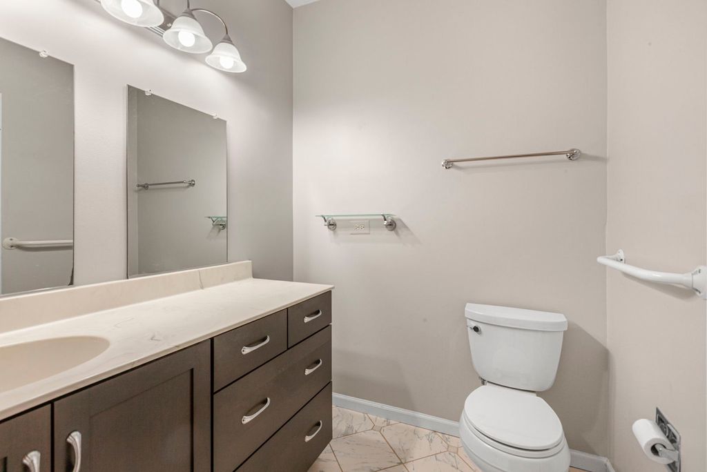 One level maintenance free living at its best! Desirable end unit location for extra privacy. Formal foyer greets you and leads to the large living room featuring hardwood flooring and could accommodate a dining area. Beautiful kitchen offers white cabinets, Corian counters, breakfast bar and bayed eat-in area with French door leading to deck. Oversized primary bedroom includes private refreshed bath with dual sink and garden tub. For even more living space enjoy the finished walk-out lower level boasting rec room with fireplace and sliders leading to brick patio, bedroom, full bath and still plenty of storage. Convenient location close to parks, shopping and train station.