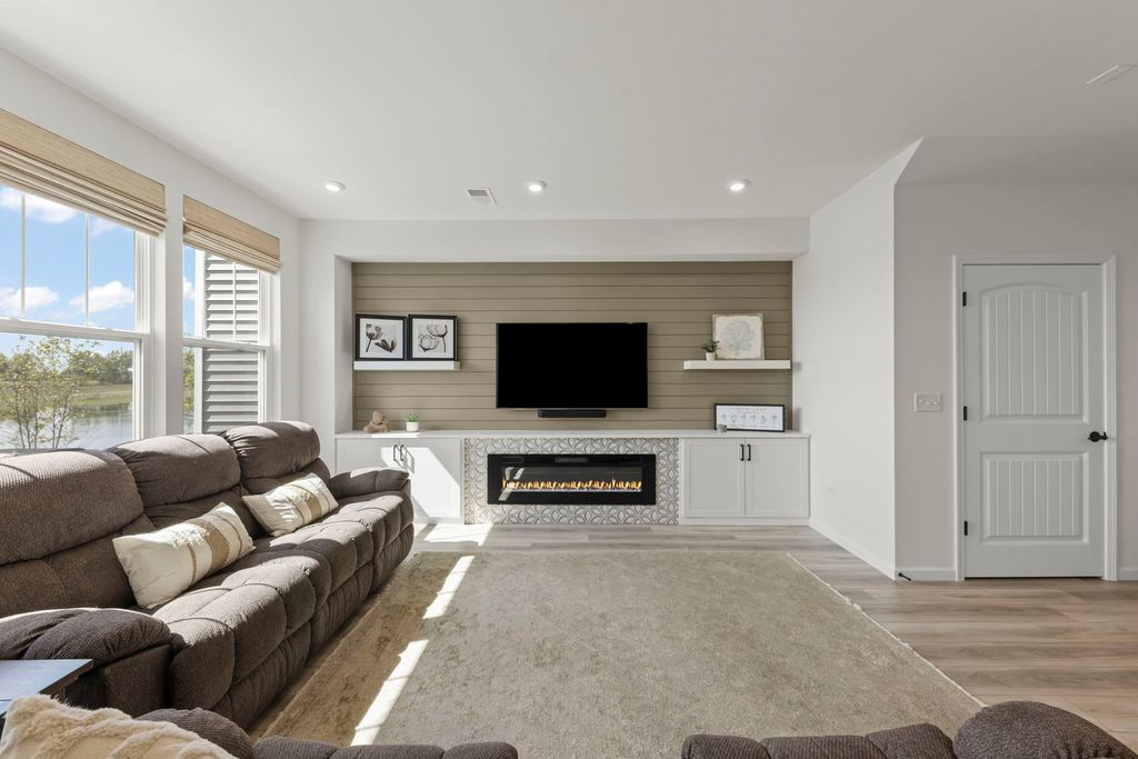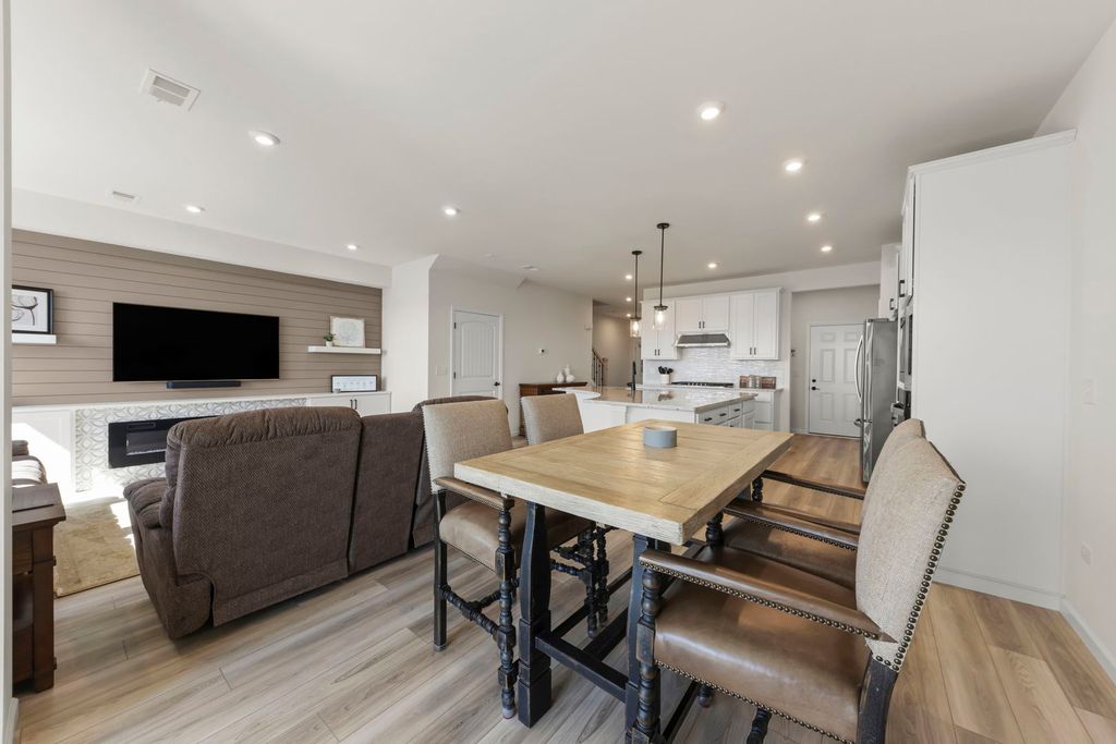 READY to MOVE IN! The only pond-view townhome available in Townes at Sawgrass - and truly better than new. Impeccably maintained with modern finishes, energy efficiency, and contemporary design - plus the advantage of enhancements already completed - all while moving in immediately and skipping the construction timeline. Welcome to your dream home in the Townes at Sawgrass, located in the prestigious district 204 with access to the award-winning Neuqua Valley High School that was recently voted a 2024 National Blue Ribbon School. This stunning Bowman model features 3 bedrooms, 2.5 baths, and beautifully designed living spaces throughout. The chef's kitchen boasts a massive center island, 42-inch white custom cabinets, stainless steel appliances, a pantry, a brand-new refrigerator, and a striking tile backsplash, all opening seamlessly to the sun-filled family room complete with a cozy new electric fireplace and custom cabinetry. Upstairs, the private owner's suite offers an extended layout with two additional feet of space, a spa-like bath with Quartz countertops, dual vanities, soaking tub, and a glass-door shower along with a large walk-in closet. Two generously sized bedrooms, large hall bath, and a convenient second-floor laundry complete the upper level. The main floor impresses with 9-foot ceilings, enhanced vinyl plank flooring, and a rear extension featuring a bright sunroom with custom built-ins that opens to a patio overlooking the serene pond. Thoughtful updates include a new washer and dryer, custom entry built-ins, new garage storage, epoxy garage flooring, a new opener, and updated window coverings. With serene pond views, stylish upgrades, and a prime location near shopping, dining, golf, and top-rated schools, this move-in ready home offers the perfect blend of comfort and convenience.