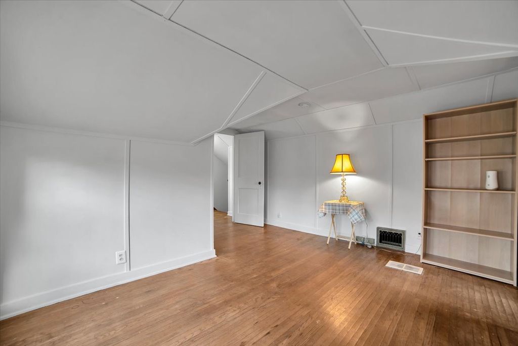 This fabulous bungalow in the Westside historic district offers original character and modern updates. A generous covered front porch welcomes you - perfect for evening conversations or morning coffee. Inside, the large family room showcases original woodwork and hardwood floors throughout. Abundant windows fill the home with light. The oversized dining room is ideal for entertaining. Main-floor primary suite with an attached bathroom adds convenience. The galley kitchen retains some original cabinetry in pristine condition. A staircase leads upstairs to a second bedroom plus a flexible room that works well as a playroom or home office, with ample storage. A side entrance and driveway make grocery unloading easy. The lower level provides additional space. Recent updates: furnace replaced in 2020 and roof replaced in 2015. Don't miss this charming home - schedule your showing today. - Estate Sale, sold as-is. Will not last long