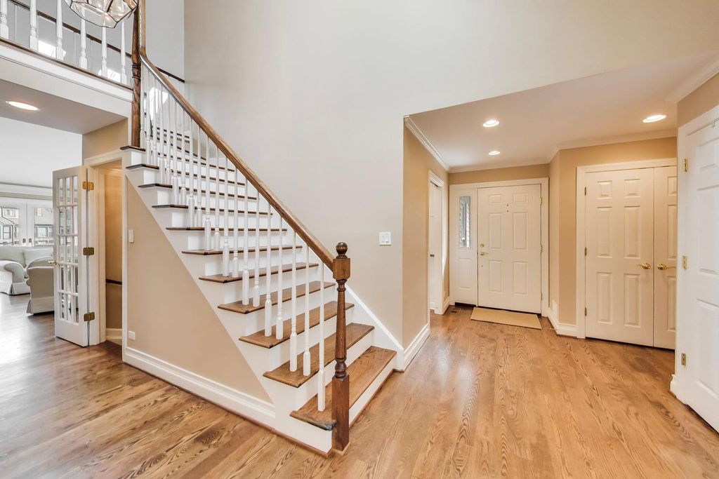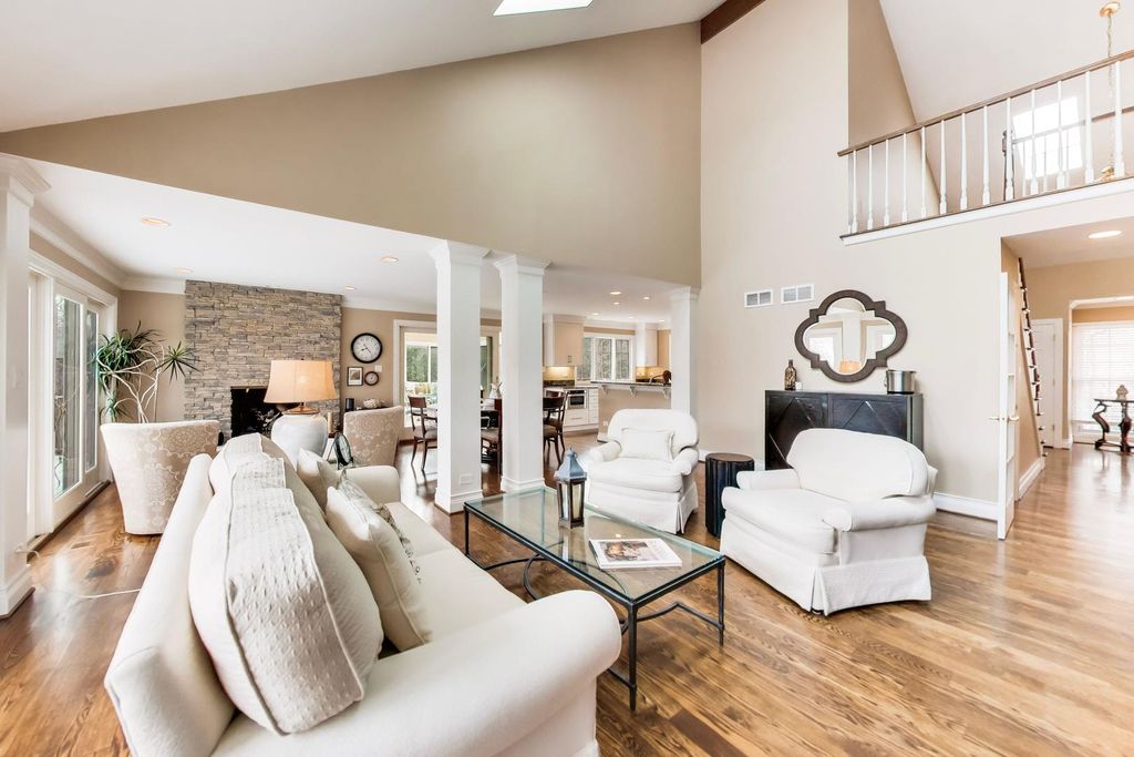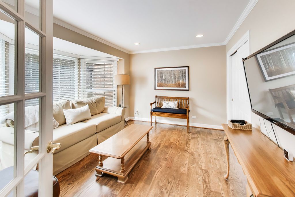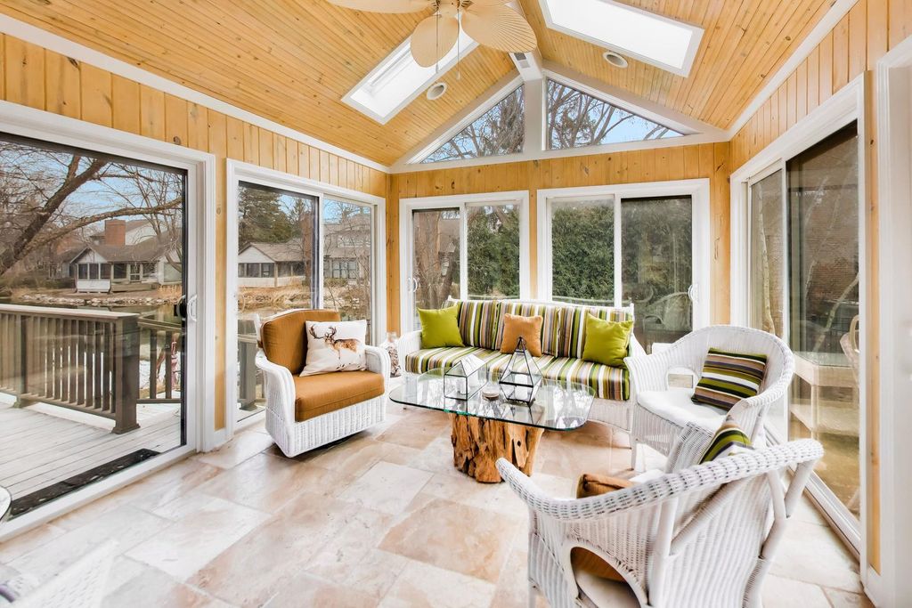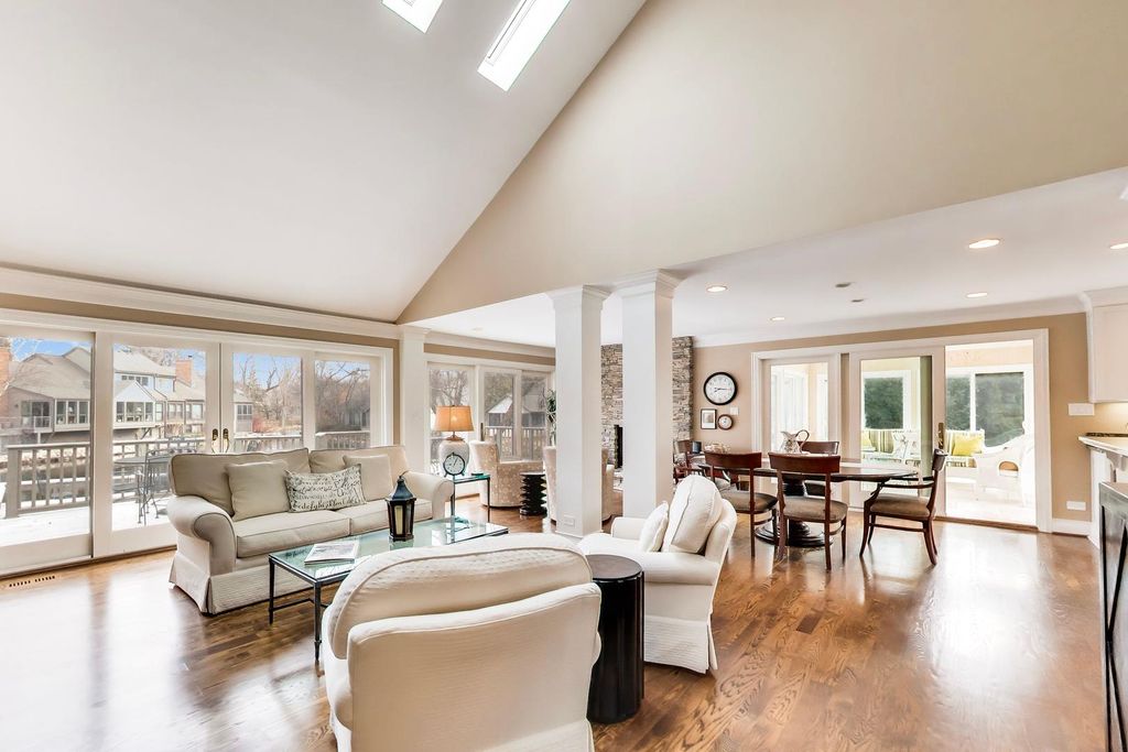 Welcome to your new sanctuary. This refined unit has been meticulously renovated over time, transforming it into a magnificent open space that offers expansive views from virtually every angle. The scenic pond can be observed from the primary bedroom, kitchen, family room, enclosed porch, and dining room. This residence boasts numerous features designed for effortless living. Highlights include a spacious kitchen equipped with a center island, a breakfast bar, and abundant storage. The main level hosts the primary suite, which overlooks the deck and features an updated full bathroom and a walk-in closet. The main level den, complete with a charming bay window, is versatile and can serve as a fourth bedroom. The first-floor laundry facilities are conveniently situated adjacent to the den. Additionally, an auxiliary laundry hook-up is available in the basement. The second level comprises two additional bedrooms and a full bathroom. The basement is partially finished, offering built-in bookshelves, a designated television area, and an office space, in addition to extensive closet storage and a crawl space. The attached two-car garage also provides ample storage capacity.