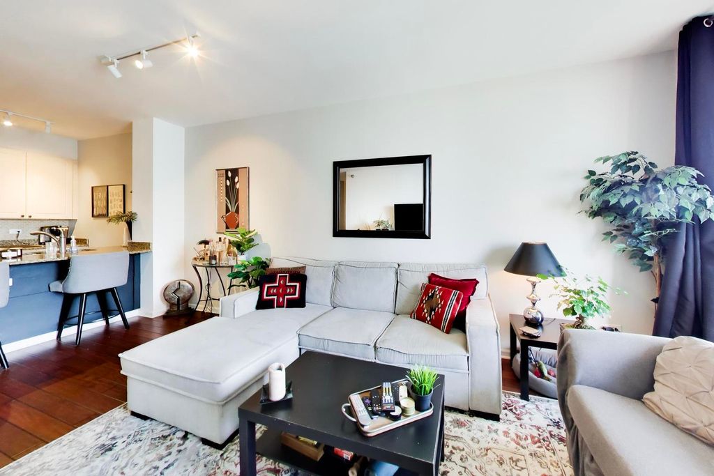 Amazing location steps from Fulton Market, River North and the Loop. This large one bedroom/one bath has an open floor plan with gorgeous western views. Wide-plank hardwood floors throughout. Updated kitchen with center island, granite countertops, stainless steel appliances. Large walk-in closet in the bedroom. In-unit washer/dryer. Full amenity building with 24 hour doorman, dry cleaners, storage, party room & fitness center. Garage parking and storage included.