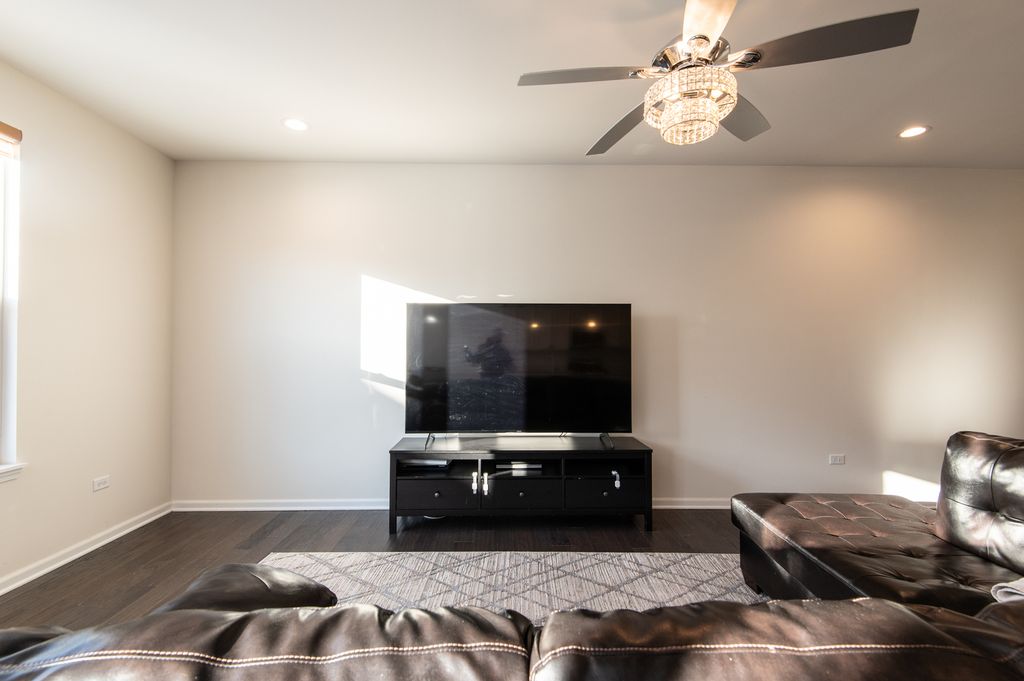 Move-in ready Ainslie model located in the highly desirable Gramercy Square subdivision. Freshly painted in today's neutral tones, this beautifully maintained townhome offers 2 bedrooms, 2.5 baths, and a 2-car garage. The bright and open main level features 9-foot ceilings and upgraded wood laminate flooring, creating a modern and inviting living space. The kitchen is thoughtfully designed with quartz countertops, 42-inch cabinetry, stainless steel appliances, and a large center island with sink and pull-out faucet-perfect for both everyday living and entertaining. Upstairs, the spacious primary suite includes a walk-in closet and private en-suite bath, along with the convenience of second-floor laundry. A true standout feature is the rare, fully finished basement (2023) offering approximately 900 square feet of additional living space-a feature no longer available in nearby new construction. The basement is finished with recessed lighting and water-resistant gray laminate flooring, ideal for a family room, home office, gym, or guest space. Located in award-winning District 204 schools and just minutes from shopping, dining, and Metra access, this home combines modern comfort, thoughtful upgrades, and an unbeatable location. A unique opportunity-don't miss it.