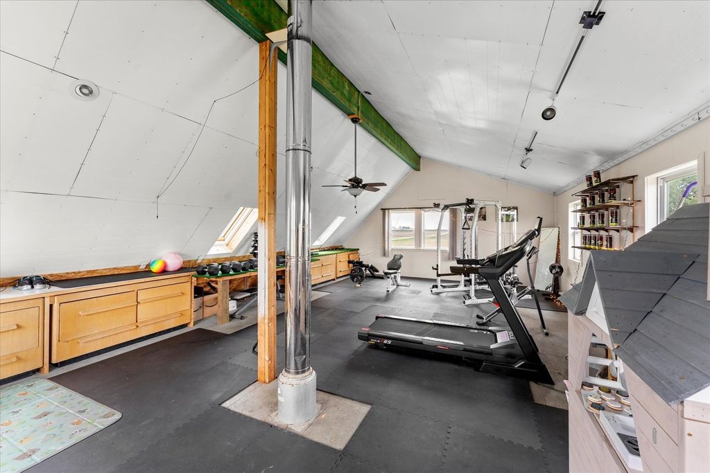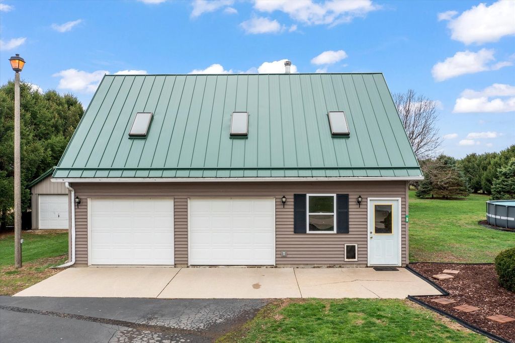 Welcome to this spacious, move-in-ready country property set on over 2 acres of beautifully tree-lined land, offering privacy and room to enjoy the outdoors. This 1,800-square-foot home features 3 bedrooms and 3 bathrooms, along with a recently partially finished full basement that provides additional living space and a dedicated office area. Inside, the home has been thoughtfully updated in recent years, creating a warm and inviting atmosphere. The centrally located living room, complete with a gas fireplace, is perfect for relaxing on cold evenings. Major mechanical updates include high-efficiency HVAC systems (approximately 10 years old) and two brand-new on-demand water heaters, ensuring reliable hot water throughout the home. The property includes an attached two-car garage, as well as a detached two-car garage with a loft-currently set up as a home gym-plus an additional shed for lawn care storage. Both the home and detached garage feature durable metal roofs that are approximately 10 years old. Enjoy outdoor living and entertaining on the freshly re-stained deck, with multiple water spigots conveniently located throughout the property.