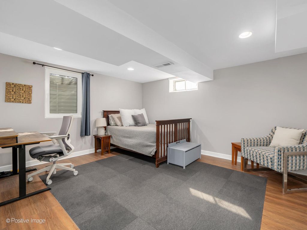 Welcome to this beautifully updated and spacious 4-bedroom ranch home, offering comfort, style, and exceptional living space both inside and out! This home is situated directly across from Edison Elementary and Sandburg Middle School. Step inside to a bright and inviting main level featuring a formal living room and an updated eat-in kitchen. The kitchen is thoughtfully designed with soft-close cabinetry, stainless steel appliances, quartz countertops, a sleek glass tile backsplash, and a pantry for added storage. The expanded family room at the rear of the home is a true highlight, showcasing a cozy fireplace, abundant natural light, and direct access to two separate outdoor living spaces-perfect for entertaining or relaxing. The main level offers three bedrooms, including a primary suite with a convenient half bath, along with a full hallway bathroom. Beautiful hardwood floors flow throughout the entire first floor. The finished basement provides an additional 1,300+ square feet of versatile living space, featuring two large recreation areas, a fourth bedroom, a private office, and a recently updated full bathroom-ideal for guests, work-from-home needs, or extended living. Additional features include a two-car attached garage, a fully fenced backyard with a storage shed, and a turnaround driveway for easy access and added convenience. Square footage includes 1,633 on the main level and 1,309 in the basement. 2024 property taxes are $10,310.30. Don't miss this fantastic opportunity to own a move-in ready home in a highly desirable location!