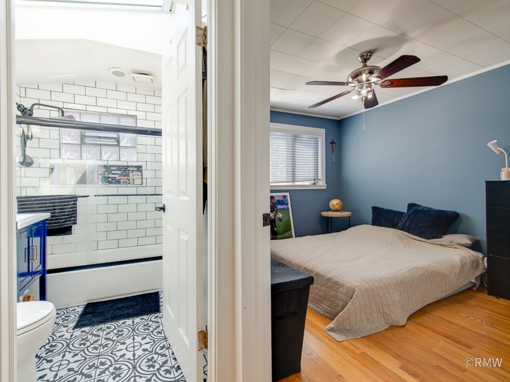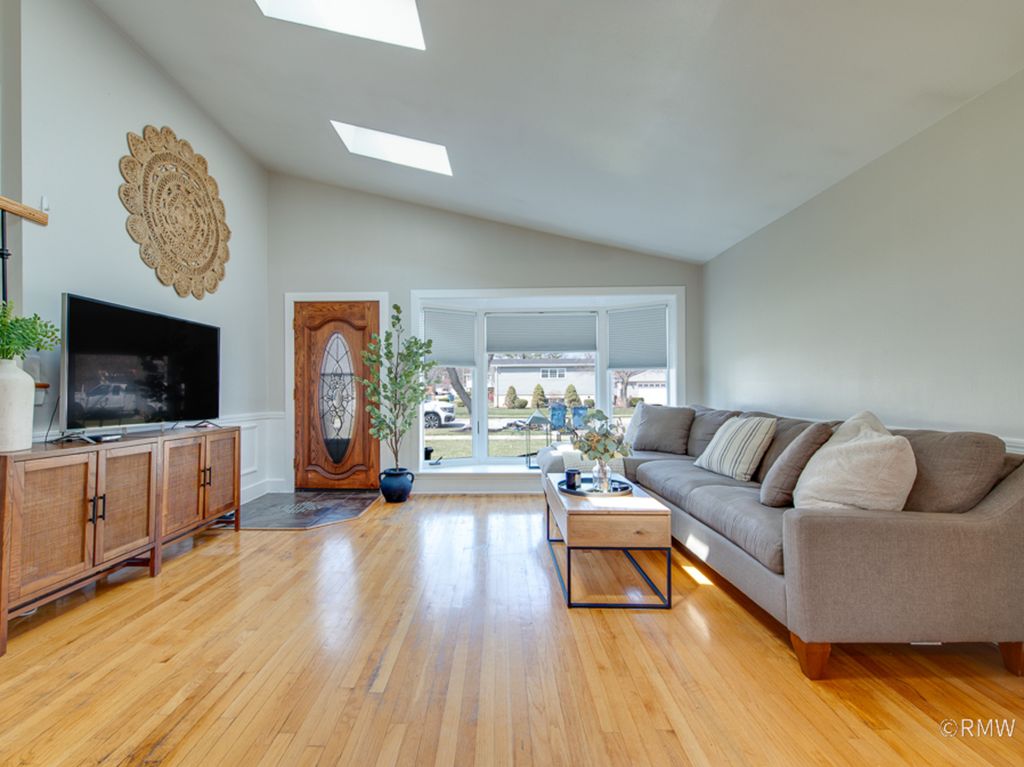 This beautifully maintained home features a desirable open floor plan on the main level, offering both comfort and functionality. The kitchen is equipped with cherry cabinets, stainless steel appliances, nice eat in area, and conveniently located pantry. Kitchen flows seamlessly into the living area. Gorgeous wood flooring extends throughout the main and upper levels, complemented by crisp white doors and trim. Skylights throughout the home fill the space with abundant natural light, creating a warm and inviting atmosphere. The upper level offers three generously sized bedrooms, while the lower level includes an additional bedroom with a connected half bath-perfect for guests or a home office. The finished lower level boasts luxurious vinyl flooring and a spacious family room centered around a cozy wood-burning fireplace. A sub-basement provides ample storage space along with a dedicated laundry area. Outside, enjoy a long side driveway leading to a two-car garage with extra storage. The private backyard features a great patio space, ideal for relaxing or entertaining. Major updates include a roof under 10 years old and a furnace under 3 years old. This home is conveniently located near shopping, highways, and restaurants. Flood insurance required.