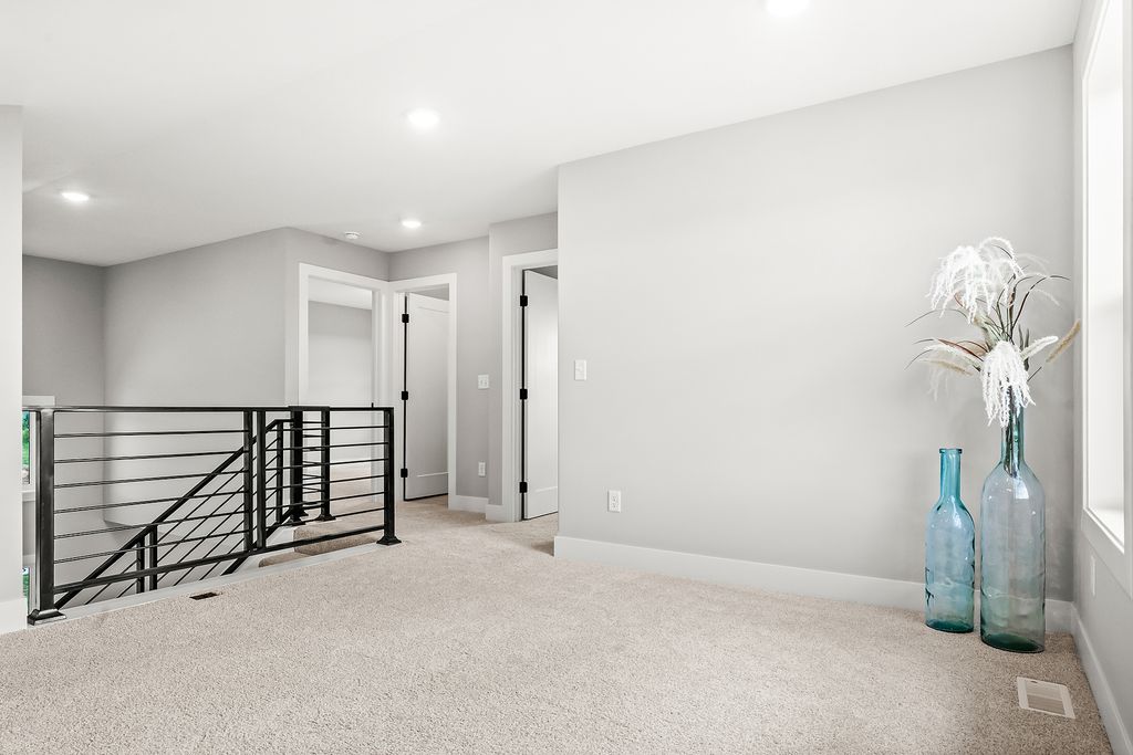 Welcome to TRUNK BAY!!!! This is a NEW DESIGN focusing on high end details. This highly efficient and frugally design 1.5 story home offers a very functional layout and contemporary finishes throughout. Featuring an open-concept floor plan with soaring ceilings, black custom metal railings, and large windows that flood the space with natural light, creating a warm and inviting atmosphere. The kitchen boasts matte gray cabinetry, a geometric subway tile backsplash, quartz countertops, and a large center island. The primary suite is conveniently located on the main level and includes a private en-suite bath featuring a tiled shower, dual vanity, and modern gold fixtures. A half bath and laundry space that adds convenience to the main level. Upstairs, a spacious loft overlooks the main living area below and provides the perfect spot for a secondary living space, home office, or versatile flex area. Two additional bedrooms and a full bathroom complete the upper level, offering a comfortable and private retreat. Connect Marty Trunk to schedule a private tour today!
