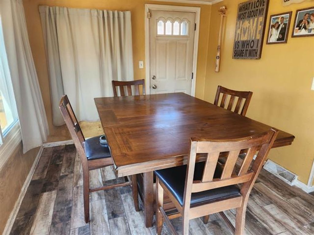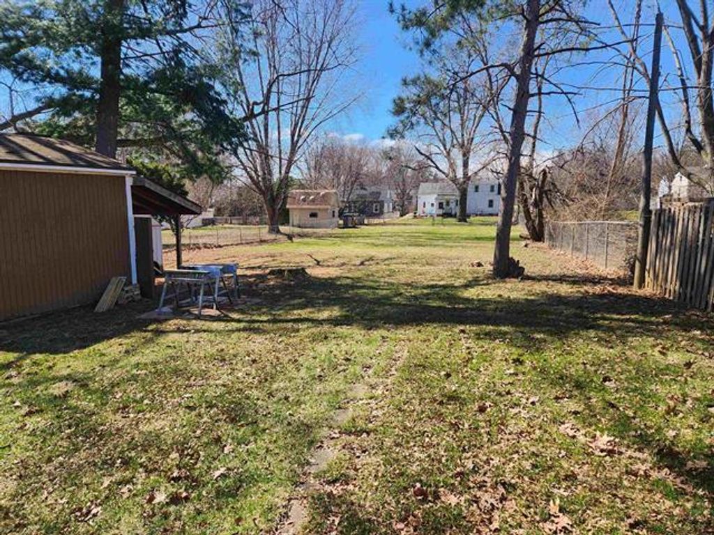 Charming ranch-style home offering 2 bedrooms plus a dedicated office, perfect for remote work or additional living space. The office is currently being used as a man cave. This home features a spacious four-season room highlighted by a large picture window, filling the space with natural light year-round. The kitchen has been thoughtfully updated with new cabinet doors and soft-close drawers, and offers additional potential for customization, allowing you to add your own personal style and finishing touches. All stainless steel appliances are included, along with the washer for added convenience. New flooring enhances both the living room and office areas. Step outside to enjoy the expansive deck overlooking a huge fenced backyard, complete with two storage sheds-ideal for outdoor living, gardening, or entertaining. The property also boasts improved curb appeal with established perennials. Conveniently located close to shopping and everyday amenities. The basement is roughed in for a half bath. Water heater 2021 and Furnace and A/C 2020. Home is being sold As-Is.