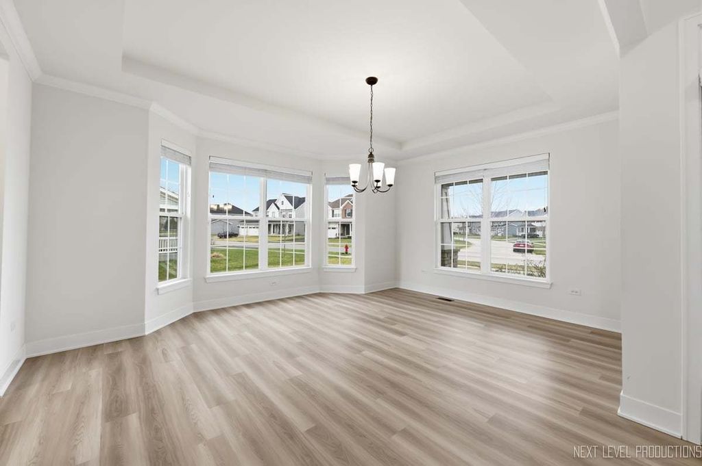 This stunning custom-built luxury home (2023) showcases exceptional craftsmanship and thoughtful design throughout. The chef's kitchen is a true showpiece, featuring upgraded cabinetry with elegant gold hardware, a tiled backsplash, oversized island with custom millwork, designer lighting, and both a walk-in pantry and butler's pantry for seamless entertaining. The dining room offers a beautiful tray ceiling, while the grand two-story family room creates an impressive yet inviting space with decorative metal spindles. A private office provides the perfect work-from-home setting, and the customized mudroom includes built-in lockers for everyday convenience. The luxurious primary suite features a spa-inspired bath with dual vanities, soaking tub, and oversized walk-in shower. Spacious secondary bedrooms and a well-appointed full bath complete the upper level. The exterior impresses with timeless stone and brick and a three-car garage, delivering both curb appeal and functionality. Highly acclaimed Oswego School District #308.