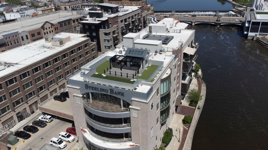One of a kind - 5th Floor Penthouse in the Sterling Bank building. Enjoy incomparable views of the Fox River, and downtown St. Charles. This is a rare offering - never to be duplicated. Elevator service (2) brings you to this newly constructed (2024) masterpiece. Built for entertaining: nearly 5,000 sq. ft with 10' ceilings & exquisite detail constructed McNally Construction Mgmt (an Avondale Custom Homes company). Uncompromising details - from the floating geometric designed ceiling, to the large format Porcelain tile flooring, no detail was missed. The Gourmet Kitchen features commercial grade appliances (Bluestar Platinum Series 60" range, Wolf, Sub-Zero) and is the centerpiece for intimate meals to full scale events. The Great Room features floor-to-ceiling full radius wall of windows with stunning views of the Fox River & downtown St. Charles. Gracious bedrooms (all en suite) with a 4th Bedroom/Study. The owner invested 800K (approx.) to create the private Roof Deck - complete with louvered Pergola, outdoor kitchen/grill station, and extended turf area (pet friendly). The Primary Suite is truly a retreat: doorless shower with programmable, multi-head shower spray system & Dressing Room with custom built-in closet system. Enhanced entertaining & lifestyle conveniences with the Savant Home Automation system (media/AV, lighting, shading system, and security). TOO MUCH TO LIST! 70+ Page eBrochure.