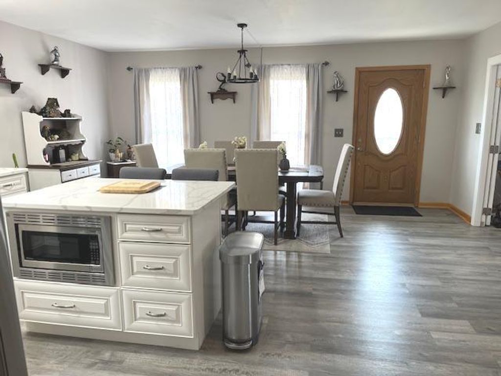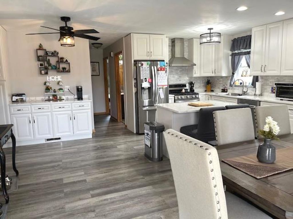 Charming 3BDR 2.5 Ba Ranch. 2Car detached garage. Many updates include: Roof 9/23, Furnace/air 10/2024, newer kitchen cabinets, W/ Quarts countertops( 2022). Kitchen is absolutely Beautful. The over sized kitchen is Great for entertaining. Lots of counter space. New flooring through out the home. Master Bedroom has a cozy fireplace for those romantic nights. Master bathroom has been updated too. All appliances stay. Nice size shed in the back yard. All the big ticket items are all complete. Home is immaculate and move in ready. Come take a look. You will not be disappointed.