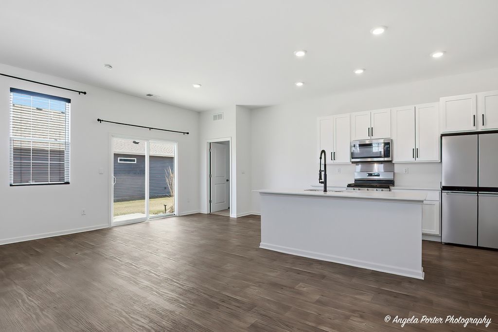 Don't Wait for a New Build When You Can Move Fast On This Newer Ranch Single Family Quad ready for fast close AND Priced Below New Construction! The Chandler includes 9'8" ceilings throughout, 2 bedrooms, 2 full bathrooms and a 2-car garage. The Kitchen offers a spacious island with eating bar, designer white cabinets, quartz countertops, stainless steel appliances, and pantry. There is a separate spacious laundry room near garage. This open concept plan also includes your own private patio! The spacious master bedroom includes a private bath with dual bowl vanity, linen closet, separate shower, and large walk-in closet. Most window treatments are included. All appliances stay including washer and dryer. HOA includes lawn cutting & snow removal. You also have miles of walking paths and newly opened Aquatic Center! This home includes Smart Home Technology and a ring doorbell.