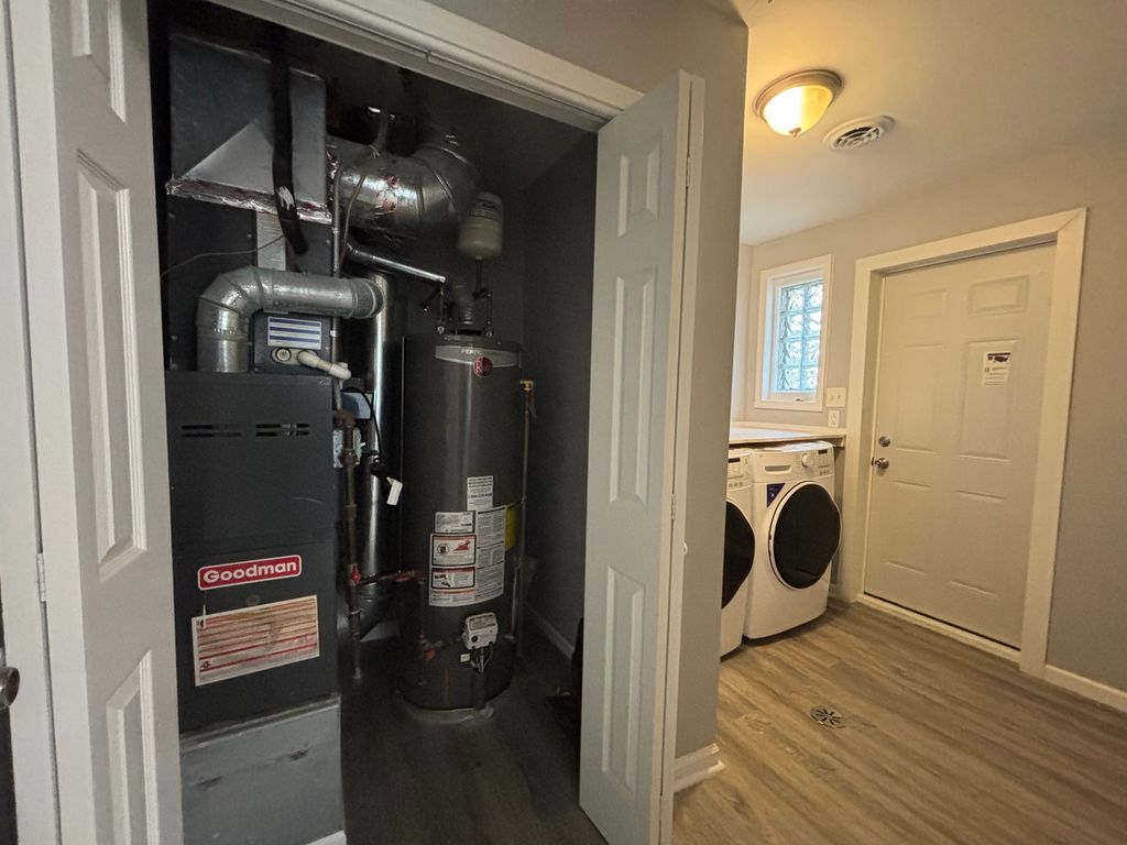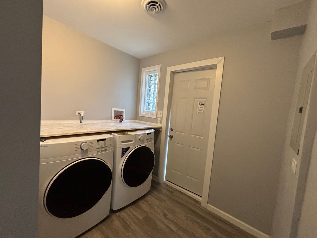 Completely Rehabbed!! Welcome to this beautifully updated and move-in ready home offering the perfect blend of comfort and modern finishes! This charming 2-bedroom, 1-bath property features an open-concept living and dining area, highlighted by laminated hardwood flooring that flows seamlessly throughout the main living spaces. The updated kitchen showcases crisp white cabinetry and comes fully equipped with brand-new appliances, including a range, refrigerator, dishwasher, and microwave-perfect for everyday living and entertaining. A dedicated laundry area with washer, dryer, and built-in counter space adds both convenience and functionality. Enjoy peace of mind with major updates already completed, including new electrical, plumbing, windows, roof, furnace, and water heater. The bathroom has been beautifully finished with classic white subway tile, offering a clean and timeless look. Step outside to a spacious, fully fenced yard (60 x 120), ideal for gatherings, pets, or future outdoor projects. The brick and siding exterior adds durability and curb appeal. Perfect for first-time buyers or anyone looking for a turnkey home-there's truly nothing to do but move in and enjoy!