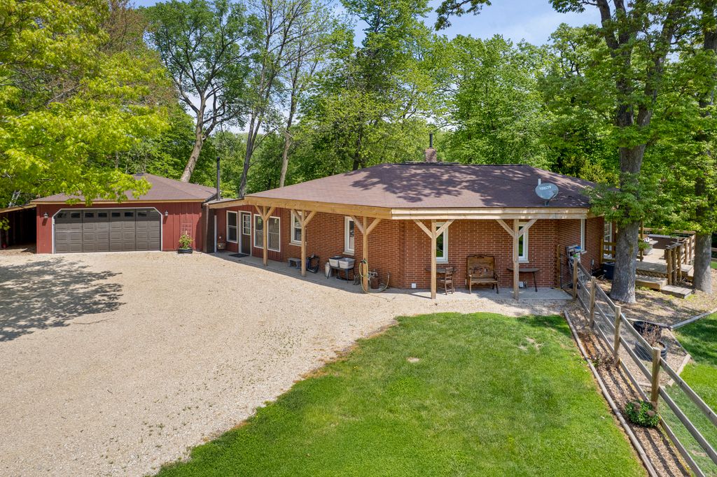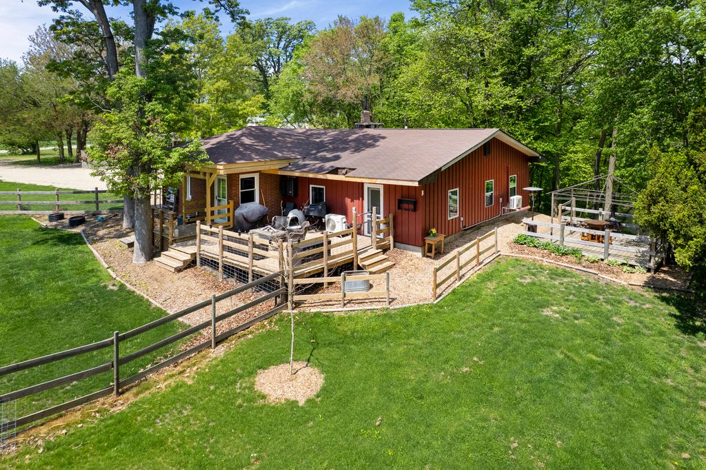 Charming and Unique Brick Home on 5.35 Acres with Creek Views Built in approximately 1965, this one-of-a-kind 2-bedroom, 3-bathroom home offers the potential to add a third bedroom and is full of character and charm. Originally constructed as a brick pentagon ranch home, it has been thoughtfully expanded with square additions, creating unique and inviting angles throughout the property. Completely remodeled in 2020 and 2021, with additional projects completed every year since, this home blends modern updates with historic charm. The heart of the home is the beautifully remodeled kitchen, completed in 2020. It features hickory cabinets, a large custom island with seating, and new appliances. The kitchen is centered around a wood-burning stove with a blower and thermostat, providing cozy supplemental heat throughout the home. Above the stove is a stunning custom live-edge mantel, adding a rustic touch. Adjacent to the kitchen is a spacious dining area, perfect for gatherings. This space could also be divided to create an additional bedroom if desired. The primary bedroom is large and inviting, with its own private bathroom featuring a walk-in shower. The second bedroom is located just off the kitchen, conveniently close to the second full bathroom on the main level. A third full bathroom is located in the basement, which offers potential for additional living or sleeping space with a few finishing touches. The highlight of the home is the expansive Great Room, offering breathtaking views of the winding Big Indian Creek. During a recent visit, two bald eagles were spotted soaring over the water-a true testament to the natural beauty surrounding this property. The Great Room includes multiple gathering spaces, a dining area, a custom bar, a TV area, an additional wood stove, and a supplemental heater. It's a space you must see to fully appreciate! The 5.35-acre property provides plenty of opportunities to connect with nature. It includes a winding creek, a small pond, and a mix of thick natural timber and managed areas. The exterior also features a country-style fence perfect for pets, livestock, or children, as well as a garden shed with electricity. A newly built 36' x 40' container barn with a 12' x 12' overhead door offers versatile and economical storage or workspace. Additional updates include a roof that is less than 10 years old, 2 recently constructed decks, steps down to creek area, 100-amp service, and freshly cleaned ductwork in 2024. The furnace, installed in 2014, sees minimal use thanks to the wood stoves that efficiently heat the home. Lastly, there's even a chicken coop with laying chickens that can be included with the sale-fresh eggs right at your doorstep! This is truly one of the most charming and unique homes you'll ever step into. Don't miss this rare opportunity to own a piece of history with modern updates and incredible natural surroundings!
