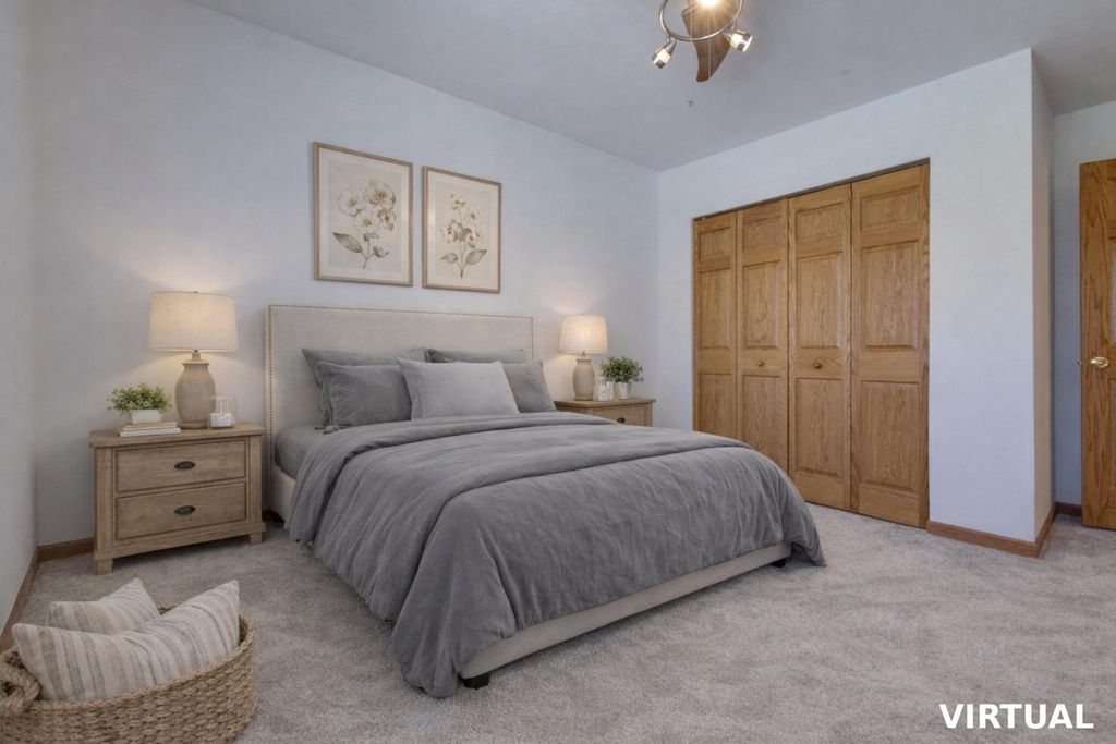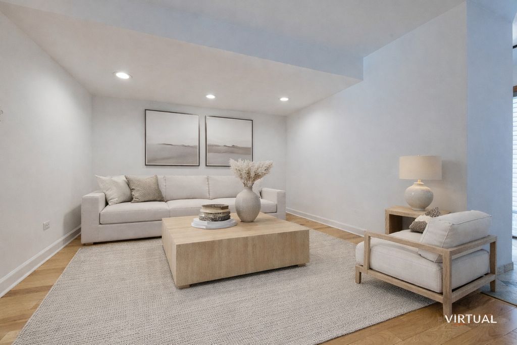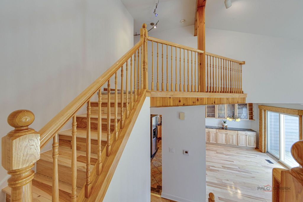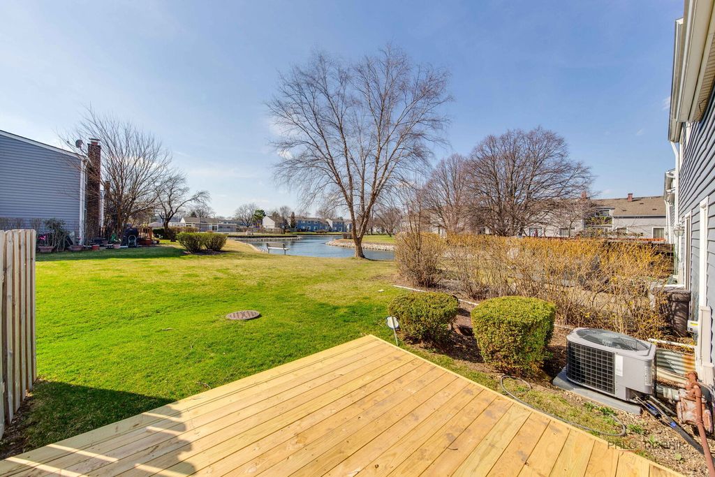 Stunning 2-story townhome in desirable Harmony Village featuring a dramatic two-story great room with soaring ceilings and custom cedar accent wall. Beautifully updated kitchen with hickory cabinetry, Silestone countertops, high-end appliances, and double oven. Hickory hardwood floors, new carpet, and fully remodeled bathrooms. Finished basement with recessed lighting and new flooring; includes washer/dryer, second refrigerator, and freezer. Relax on your private deck overlooking serene pond views with access to community pool. Move-in ready with quality updates throughout.