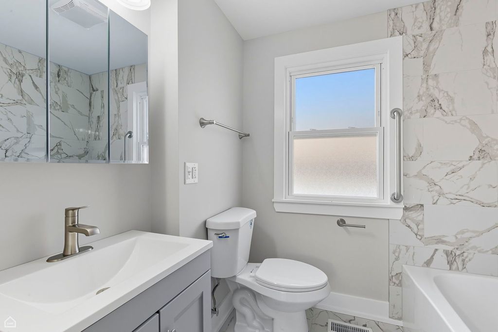 Looking for BEST BUY IN BEVERLY? THIS HOME IS IT!! GORGEOUS, 5-BED, 3-FULL BATH, FULLY RENOVATED (2025)** RECENT UPDATES (MARCH 2026)!! BRICK Bungalow in Historic BEVERLY. UTILITY ROOM Basement walls UPDATED w/Fresh Coat Paint along with Painted Floors (MARCH 2026). UPDATED Storage Space under the Back Porch w/NEW INSULATION & DRYWALL (MARCH 2026) provides Great Exterior Storage Space! Close to Shopping, STARBUCKS, Quaint Shops, Parks and much more! EVERYTHING IS NEW: ROOF, FASCIA & SOFFIT w/Commercial grade GUTTERS (2025), FURNACE, HWH, CENTRAL AIR (2025), SUMP PUMP (2025), NEW (2025) CONCRETE SIDEWALK leads to spacious Wood DECK with PATIO (2025) for great "summer fun"! NEW Climate Guard Double-Hung, Energy efficient Windows thru-out (2025), NEW Steel Entry Doors (2025). Upon entering, you are met with NEW (2025) CUSTOM built HARDWOOD STAIRS in the foyer, leads to beautiful LIVING room with Hardwood Flooring, NEW BAY WINDOWS and CEILING FANS with Lights (2025) along with Recessed Lighting! For the holidays enjoy the FORMAL DINING ROOM w/NEW Climate Guard windows (2025), Recessed and CRYSTAL Lighting for an elegant "dining experience"! NEW MAIN FLOOR FULL BATH (2025), complete with MARBLE Tile Tub w/Rain shower & HANDRAILS! MAIN FLOOR BEDROOM w/HARDWOOD flooring and Climate Guard windows (2025). FULLY RENOVATED KITCHEN (2025) presents: muted gray color scheme with gray SOLID WOOD Self-Closing Cabinetry, complete with Wood Cabinet Pantry and PLENTY OF STORAGE. This gorgeous KITCHEN presents: HARDWOOD FLOORING, RECESSED LIGHTING, STAINLESS STEEL appliances, DISHWASHER, RANGE w/WARMER & MICROWAVE, NEW QUARTZ (2025) countertops with ISLAND/ BREAKFAST BAR & WHITE SUBWAY TILE BACKSPLASH along with Table SPACE by the window. This provides an awesome atmosphere for your "cooking experience"! The bonus room on this main floor is the RENOVATED FAMILY ROOM, complete with Beautiful STONE Wood Burning Fireplace, NEW Climate Guard windows & NEW Ceiling Fan w/Lighting which leads to the NEW WOOD DECK (2025) for "easy entertaining"! WAIT THERE IS MUCH MORE!! The Attic presents a Spacious PRIMARY BEDROOM, NEW (2025) Custom Climate Guard Windows w/ Wood Laminate Flooring along with a 2nd BEDROOM with NEW Climate Guard Windows, Ceiling Fan (2025) and WALK-IN Closet. There is a 3rd BEDROOM w/ NEW Climate Guard Windows (2025). There is a WALL OF STORAGE SPACE in the hallway complete with lighting! The Spacious NEW (2025) FULL BATH offers Marble Tile Tub w/Rain Shower! Want to host a party and need more space? This WALK-OUT Basement offers a FULLY RENOVATED (2025) HUGE RECREATION ROOM (32 X 23sf) to host events! Complete with NEW (2025) WOOD LAMINATE FLOORING, GLASS BLOCK WINDOWS, FULL TILED BATH w/Walk-In Shower & Rain shower, 6-Panel Entry Doors and 5th-BEDROOM w/GLASS BLOCK WINDOWS, Recessed Lighting & Loads of STORAGE SPACE! Spacious RENOVATED (2025) LAUNDRY Room, NEW HWH, GLASS BLOCK WINDOWS, GAS/DRYER HOOK-UP, Ample Storage Space, 6-Panel Doors, STEEL ENTRY DOOR for Backyard Access! This BEAUTIFUL home is completely RENOVATED and waiting for you! Private Showings are easy to schedule! CONTACT US TODAY! THIS BEAUTY WILL NOT LAST!! BEING SOLD AS-IS!
