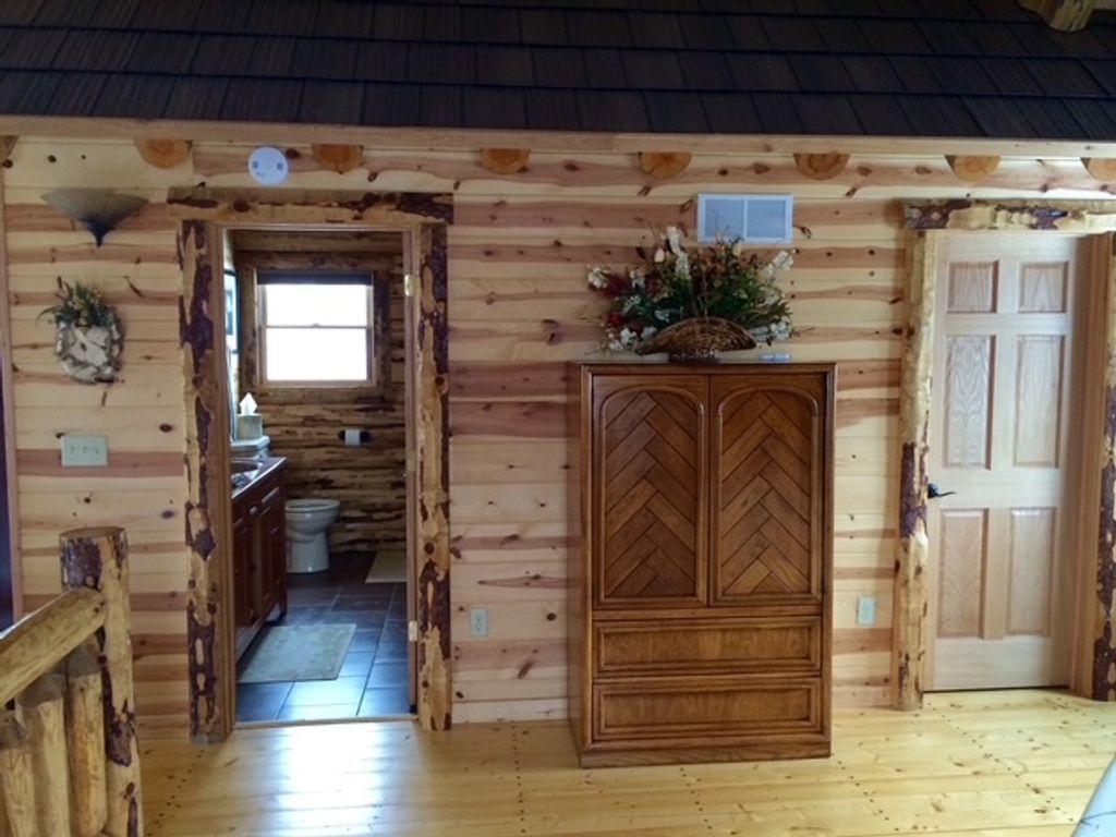 Escape to your own private custom log home retreat on a double lot with an additional adjacent wooded lot. Nestled among towering trees, this authentic log cabin offers the perfect blend of rustic charm and modern comfort. Step inside to a warm and inviting living space with soaring ceilings and a cozy, floor-to-ceiling wood burning stove, ideal for relaxing on crisp evenings. Sunlight pours in through oversized Anderson windows, highlighting the natural beauty of the exposed log walls and gleaming hardwood floors. 3 Bedroom and 3.5 Bath Log Home with updated kitchen features, including Hickory cabinets, granite countertops, stainless steel appliances and a spacious island, perfect for gathering with family and friends. The primary bedroom suite provides a peaceful surrounding landscape. For those cold Winter days relax in your own Sauna. With a layout designed for both intimate evenings and grand entertaining, this home offers covered porch and a lower-level recreation area. This is a Custom Log Home built for making memories, whether you're hosting an unforgettable holiday gathering or enjoying a tranquil moment by the fire pit. All New Appliances 2025, New mechanicals 2025, new roof 2026 , new asphalt driveway 2026. Proof of funds required prior to showing. Contact us for a showing of this exceptional property.
