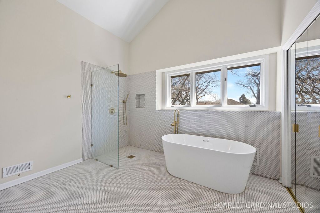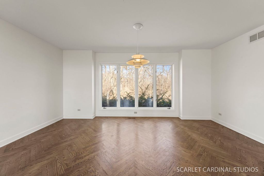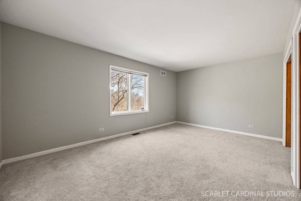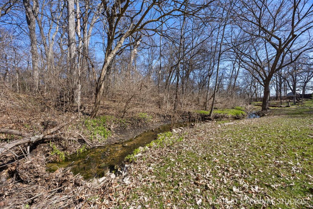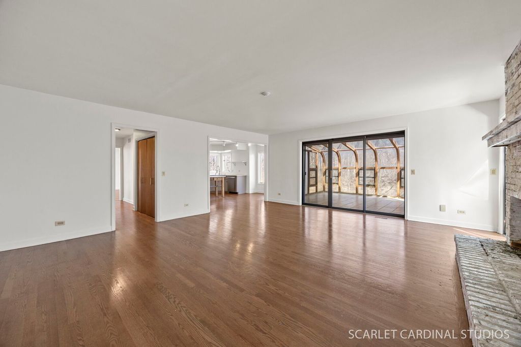 This custom 5 bedroom Airhart home sits on a wooded one acre lot across from the West Branch Forest Preserve and Old Wayne Golf Course, offering a serene, private retreat surrounded by lush landscaping and woods. Expansive windows throughout the home fill the space with natural light and showcase the peaceful setting from nearly every room. The freshly painted contemporary interior features new herringbone-patterned solid oak hardwood floors throughout the main level, creating a warm and sophisticated feel. The soaring two-story living room flows seamlessly into the formal dining room, while the spacious kitchen offers a secondary eating area and opens to the family room with a brick fireplace, heated sunroom and separate greenhouse area. A main floor bedroom can serve as a den/office. Upstairs, the vaulted primary suite is complete with an updated luxury bathroom featuring a standalone tub and walk-in shower. 3 other spacious bedrooms and full hall bath wrapped up the second level. The finished basement expands your living space with a large recreation room, wet bar, and half bath. Additional highlights include an updated powder room, skylights, abundant storage, and a three-car garage. Step outside to enjoy the wraparound deck and tranquil natural surroundings-ideal for relaxing or entertaining. Located within highly rated District 25 schools and just minutes from Wheaton Academy, this home offers the perfect blend of privacy, comfort, and convenience.