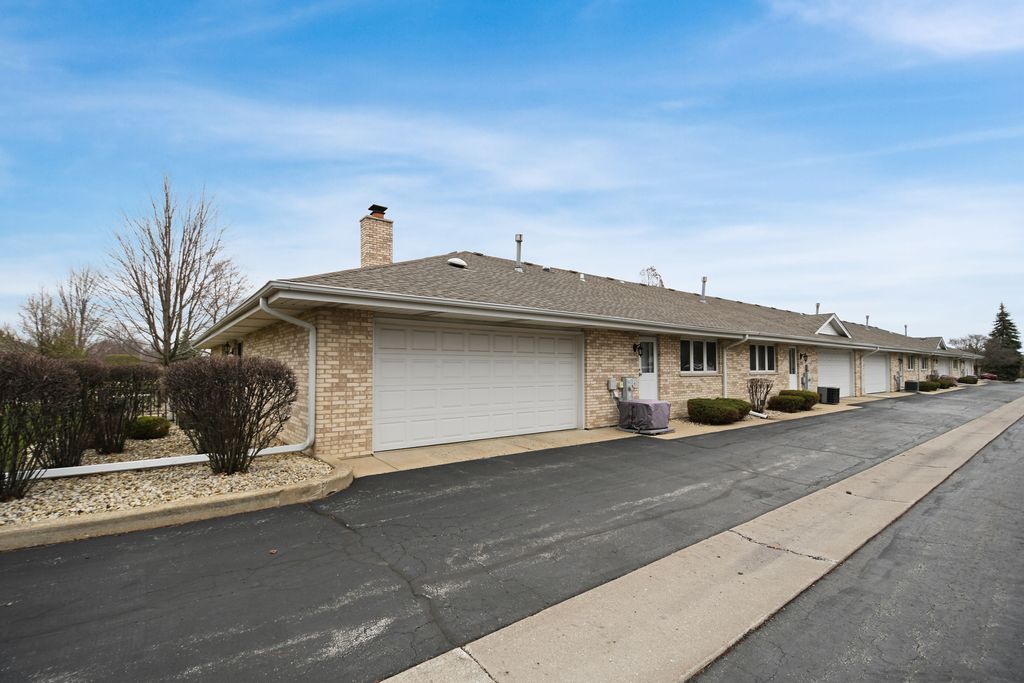 Absolutely, positively the cleanest ranch townhome with the best floor plan in Eagle Ridge, beautifully upgraded within the last three years. Step inside to find newer hardwood flooring throughout the gracious living room that flows into the formal dining area, both enhanced by large picture windows that fill the space with natural light, then continuing seamlessly into the eat-in kitchen featuring newer granite countertops and newer appliances. The relaxing family room also showcases hardwood flooring and a classic brick fireplace, creating the perfect setting for lounging or entertaining, with patio doors that open to a concrete patio ideal for outdoor relaxation. Two bedrooms and two sparkling bathrooms include a spacious master suite with its own private bath featuring a convenient double-sink vanity, Jacuzzi tub, and separate shower. The home also offers a convenient laundry room with full-size washer and dryer, plus an attached two-car garage. Additional updates include a newer furnace with humidifier, newer central air, and a newer water heater. Easy to see and easy to buy, so schedule your viewing before this special opportunity is gone!