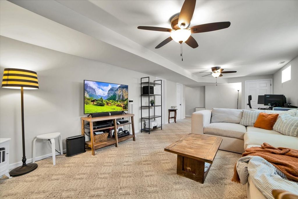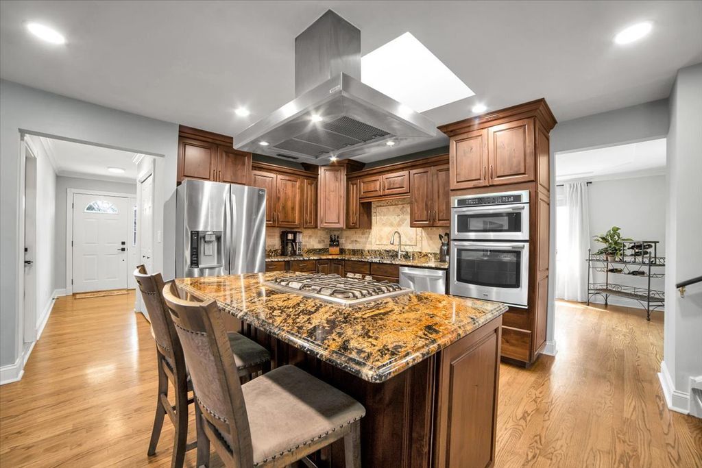 This 4-bedroom, 3-bathroom, 3-step ranch in the desirable Hunt Club subdivision is the one you've been waiting for. Past the foyer, you'll enter the updated kitchen with a skylight, SS appliances, no touch faucet, built-in oven/microwave, travertine backsplash, and a granite island with SS hood and barstool seating. There's an attached family room with a brick fireplace and cathedral ceiling. Timeless features like a tray ceiling, french doors, and a bay window can be found in the nearby dining and living rooms. Up 3 steps you'll find a full bath, laundry room, and 3 bedrooms. The primary suite has a WIC and a full travertine tiled bathroom with a jacuzzi tub and separate glass shower. There are multiple WICs (in 3 of 4 bedrooms.) Hardwood flooring is throughout with carpet in the bedrooms (new carpet in the 4th bedroom in the basement which has an attached bathroom).The additional living room in the basement is huge and has endless possibilities. The house is deceptively large with 3 separate living spaces, and an additional unfinished sub basement with amazing storage. The attached 3 car garage allows for multiple cars and even more storage. A new roof and a beautiful stamped concrete patio (both completed in 2024) is located off the kitchen for entertaining and enjoying the beautiful neighborhood view. A perfect location minutes from restaurants, shopping, and interstates, that offers easy access to everything while maintaining a quiet neighborhood feel. Schedule your showing today!