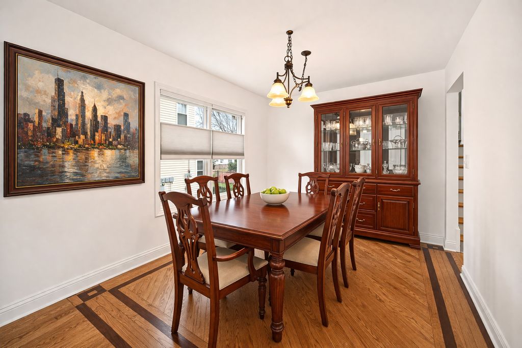 This beautifully maintained home offers a light, bright, open layout highlighted by rich oak flooring with a custom walnut inlay that adds warmth and character throughout the main living spaces. Oversized Marvin Infinity Fiberglass windows flood the home with natural light, creating an inviting atmosphere in the spacious living and dining areas-perfect for both everyday living and entertaining. The updated kitchen features elegant cherry cabinetry, newer stainless steel appliances (2022), and ample workspace, seamlessly connecting to adjacent living areas. A standout feature is the wonderful sunroom with realistic wood plankeded flooring, providing a relaxing retreat with amazing serene water views and spectacular sunsets making it an ideal space to unwind. Additional living space in the finished basement includes a cozy setting with a gas fireplace and distinctive wood ceiling, offering flexibility for recreation, work, or guests. Outside, the home continues to impress with a generous yard, scenic water views, and a screened-in porch that enhances indoor-outdoor living. Complete with an attached garage and extra wide concrete driveway, this property combines comfort, style, and functionality in a desirable setting. Extensive Improvements & Upgrade List attached including roof, windows, siding, Tankless Water Heater and so much more. Less than a block from the Prairie Path,across from St. Andrews Golf Course, steps away from extensive shopping and sevices. Metra Station and Park District are just minutes away!