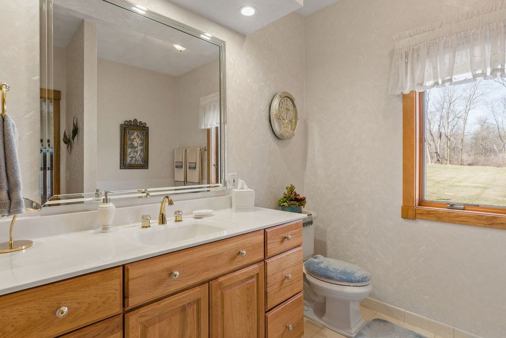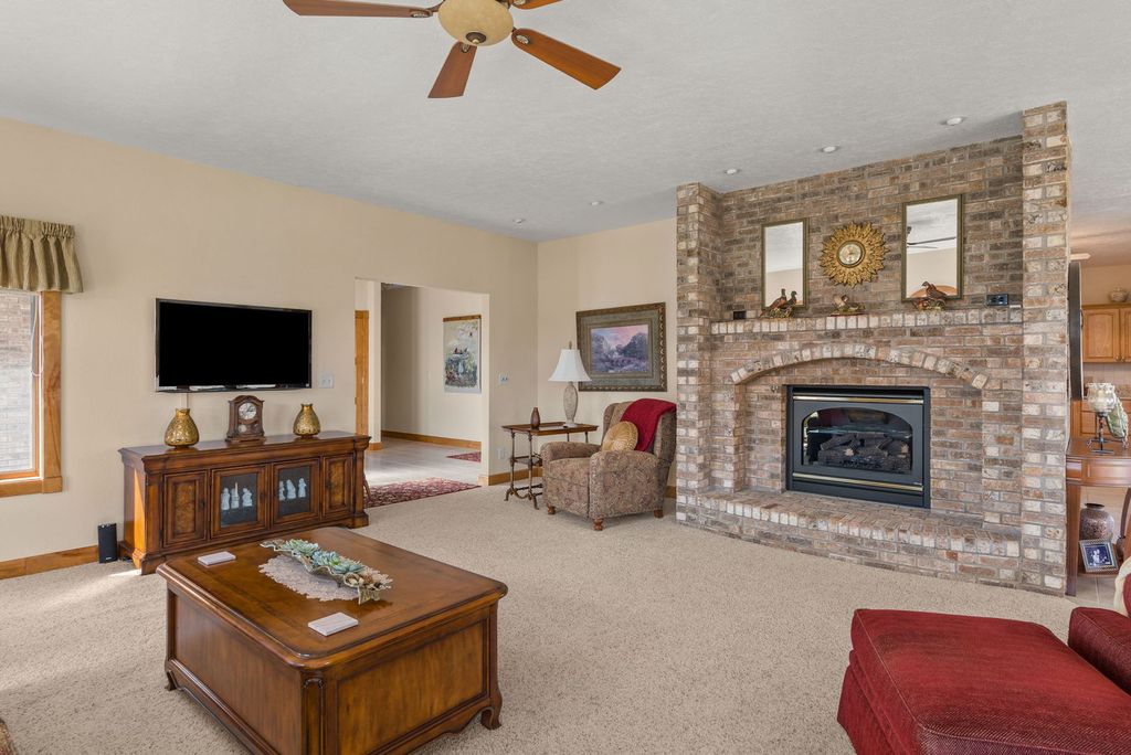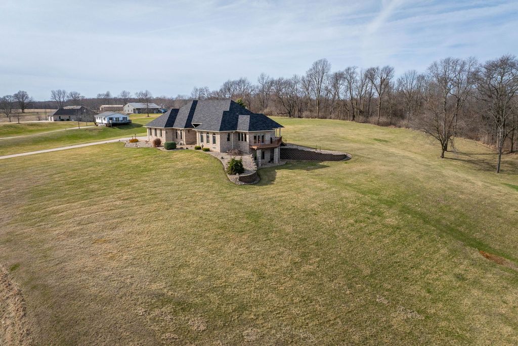 Perched atop 3+ picturesque acres, this immaculate custom-built brick ranch offers the perfect blend of craftsmanship and tranquility. Offering 3 spacious bedrooms and 3 full bathrooms, this home showcases granite countertops, rich solid oak cabinetry, and two classic brick fireplaces. A partially finished walkout basement adds extra living space, while the large covered patio invites you to relax and take in sweeping countryside views. The oversized 4-car garage provides ample storage for all your needs ?ideal for those seeking refined country living.