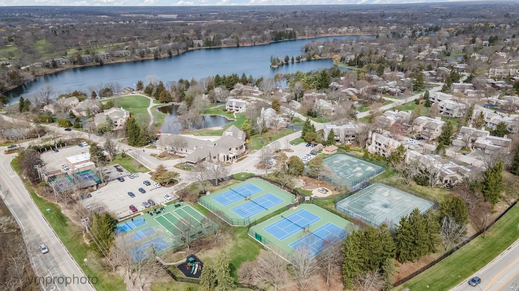 Magnificent Big Lake views from this lakefront Fenimore model. Enjoy a Northwoods vacation vibe from this duplex townhome that lives like a single family home. The mature trees dot the rolling lawn that cascades down to the water's edge where you can relish in all the delights that lakefront living affords. This stunning home has been completely remodeled, has all new windows and the sought after luxury of a direct entry 2 car garage into a large custom designed walk in pantry and mud room. The 2 story Foyer opens up to the cozy, yet spacious Den with Butler's Pantry featuring a wet bar & Sub-Zero bar refrigerator. An elegant Living Room feels like you are living in a lavish treehouse complete with stunning fireplace flanked by windows and another full wall of windows viewing the water. A rare find is the formal large Dining Room with plenty of space to entertain in style where you can access the private deck to flow onto with stepping stones down to the lakeside paver patio. The remodeled Kitchen is open and ideally planned with custom Amish soft close drawers, task lighting, granite counters, 2 separate breakfast counters & high-end appliances featuring Wolf, Bosch & Sub-Zero. The 2nd floor has a loft landing with transom window and conveniently located washer and dryer. The Primary Suite is drenched in sunlight and is unbelievable spacious in design with full lake views. One whole wall is custom closet with organizers and an additional closet as well. The luxury updated primary bath boasts elevated granite vanity with dual sinks and large custom designed shower with seat, grab bar, niche, body sprayer and frameless glass door - complete with window as well! The two additional bedrooms are very large, featuring great closet space and are neutral in design - all new carpet on 2nd floor! The glamorous hall bathroom has been updated and boasts a window, elevated vanity with dual sinks, tub/shower with custom tile work, glass corner shelves and frameless shower door. The Full Finished Walk-Out Lower Level has been recently remodeled! The focal point fireplace is stunning with a shimmering stacked stone design & raised hearth -perfect for cozying around while taking in the stunning lake views. The office space has a granite credenza with cabinetry and wet bar area with glass cabinetry, granite counter and a bar refrigerator - the perfect spot to work or entertain. The luxury feel of the lower level is complete with rounded corner beading, luxury vinyl plank flooring, mirrored art & collectible display shelves and great window lines and a 3 pane sliding glass door to the private paver patio complete with automatic awning. The lower level has an enormous storage room that is finished and the shelving will remain. This home offers everything you could ask for in a single family home, yet offers you the luxury & maintenance free lifestyle. Solar Panels (completely paid for) add value with lowered electric bills averaging $214/month for 2025. Enjoy kayaking, swimming, pickleball, indoor/outdoor pools, hiking the 35 acre forest preserve & trail around the lake, gather with friends at the beach or in the clubhouse - all within the confines of the guarded and gated community of Lake Barrington Shores. Dine at the golf club or play a round with friends (golf is a separate membership). Come see why LBS is the sought after destination for luxury living!