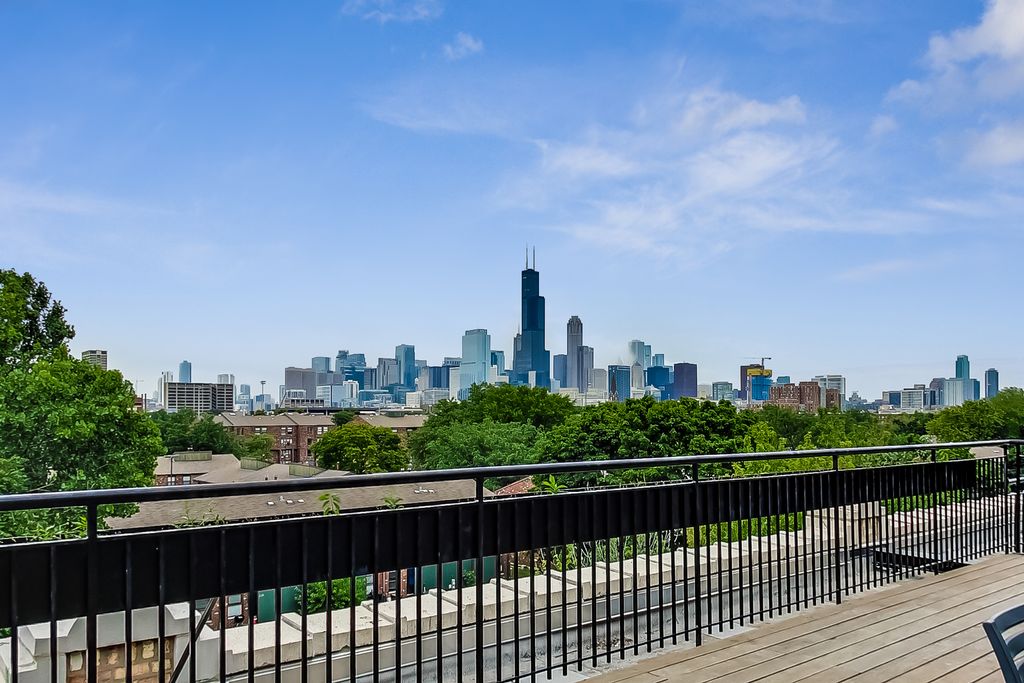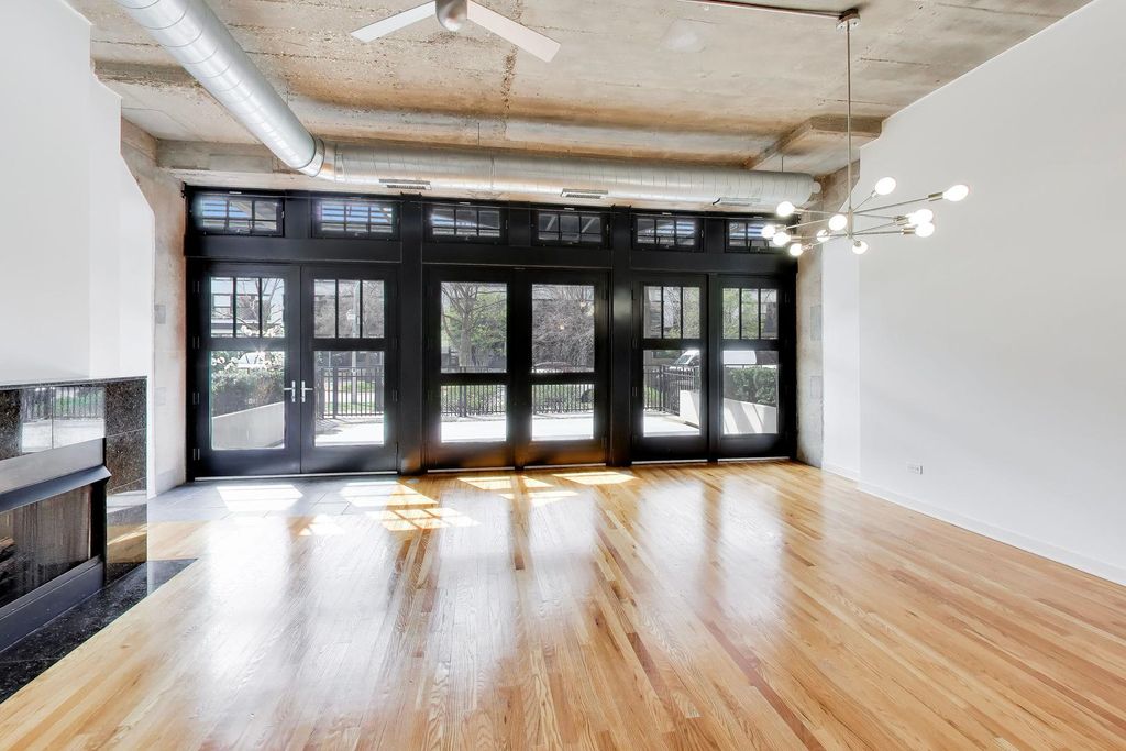 Rarely available on tree-lined and landscaped 15th Street, this south-facing 2BD/1BA gets amazing sunlight and has a huge 24' x 15' private terrace! Garage parking is included. These units don't come up very often; this is your chance! Hardwood floors throughout. Spacious open living/dining gathering space with large 12-foot floor-to- ceiling windows, and a cozy gas fireplace with granite tile surround. The kitchen features stainless steel appliances, 42" cabinetry and a breakfast bar with dark granite countertops. Pipes under the sink have been replaced and a new faucet and disposal were recently installed. The large primary bedroom features an improved closet system with double rods and shelves. The second bedroom is ideal for guests, a nursery, or office. Other features include a recently upgraded, ultra-large front-loading smart washer/dryer (2024), powerful new WhisperSense bathroom fan with humidity sensor/timer, central heat and air with new control panel, contemporary light fixtures, fresh paint throughout, and much more. With a private entrance off the terrace and no first floor hallway, this unit is very quiet. DirecTV and Internet are included in the monthly assessment. University Commons is an extremely family-friendly/pet-friendly historic complex converted in 2006 and made up of six buildings in Chicago's University Village neighborhood. In addition to its superior location, pinned between Little Italy and Pilsen - and just 13 blocks from the hot West Loop - the complex offers a slew of amenities including gyms, recreation rooms, 3-sided rooftop decks, an outdoor pool, green spaces, and a 26-seat movie theater for streaming, watching Bears games, etc. Close to parks, restaurants, bars, and cafes near Taylor Street, UIC, Medical District, Costco/ Whole Foods/Jewel-Osco, I-90/94/290, downtown and public transportation - Metra, bus, and Blue Line. Heated, garage parking with storage included. Don't miss this rare find! Come see us today!