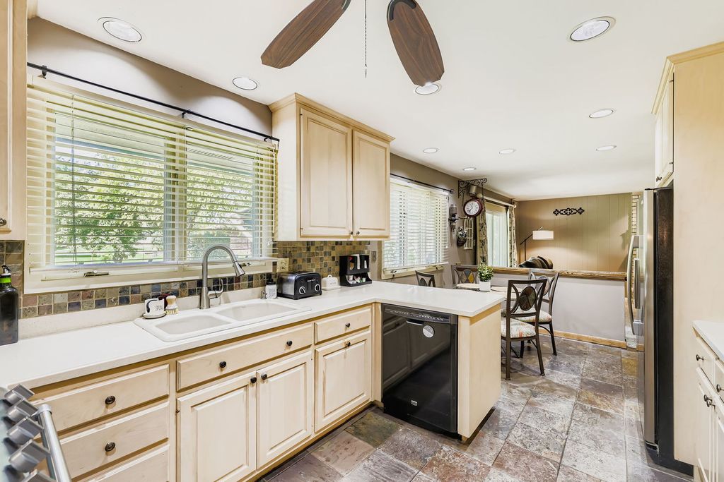 Shows Like a Dream! Welcome to this fabulous, move-in-ready 2-story home in Schaumburg's sought-after Weathersfield West. Encompassing nearly 2,300 sq. ft., this beauty has been meticulously Updated and Lovingly Maintained. Inside, you'll find an immaculate, neutral palette and tasteful decor throughout. The inviting foyer with slate flooring opens to a Massive Living Room featuring new plush carpeting, leading into a formal Dining Room perfect for hosting. The heart of the home is the Updated Kitchen, boasting custom 42" cabinetry, Stainless Appliances, a tile backsplash, and a large pantry. It flows seamlessly into the expansive Family Room, where a cozy fireplace and Updated sliding doors lead to your private patio retreat. Functional highlights include a spacious first-floor laundry/mudroom and powder room, both with slate flooring. Upstairs, the secluded Primary Suite offers a full dressing area, a large walk-in closet, and a Private En-Suite Bath. Three additional Generous Bedrooms feature neutral carpeting and ceiling fans, sharing a beautifully Updated hall bath. Situated on a Massive, manicured lot with a Custom Retractable awning and gorgeous landscaping, this home is minutes from top-rated schools (Campanelli, Jane Addams, and Hoffman Estates High), parks, and I-90. Truly a fantastic find!
